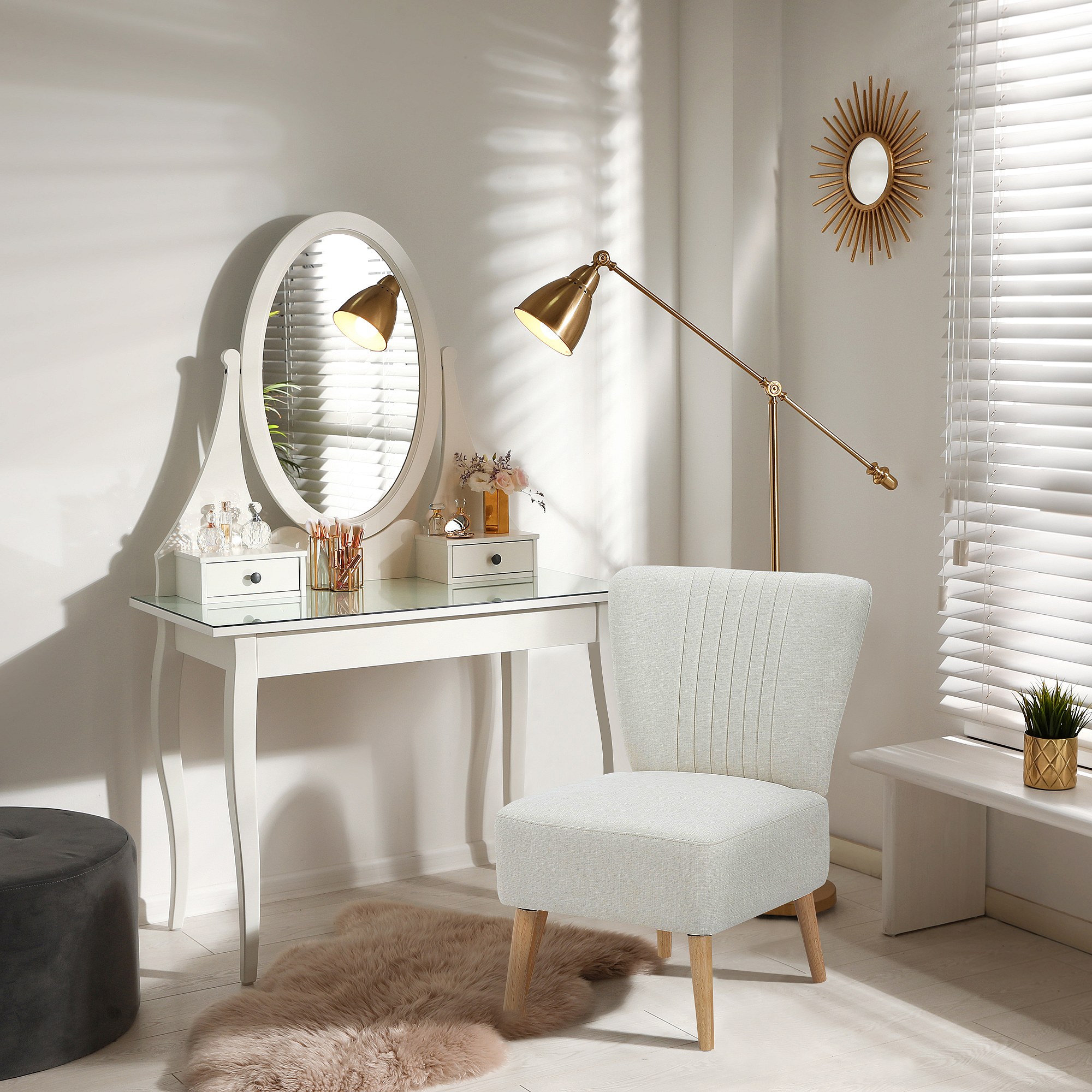 Poltrona imbottita stile nordico per camera e sala in tessuto