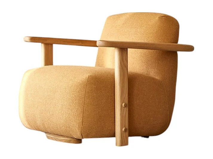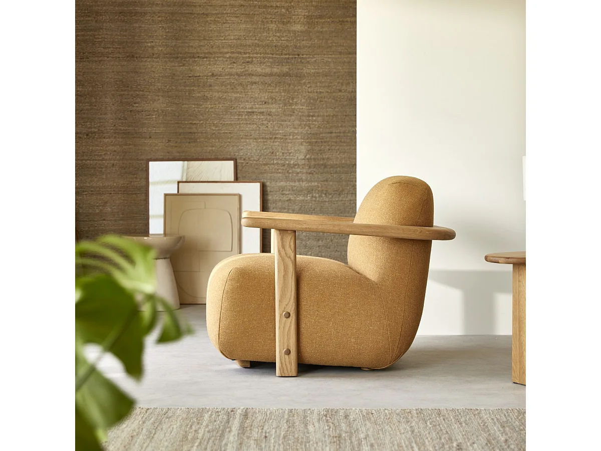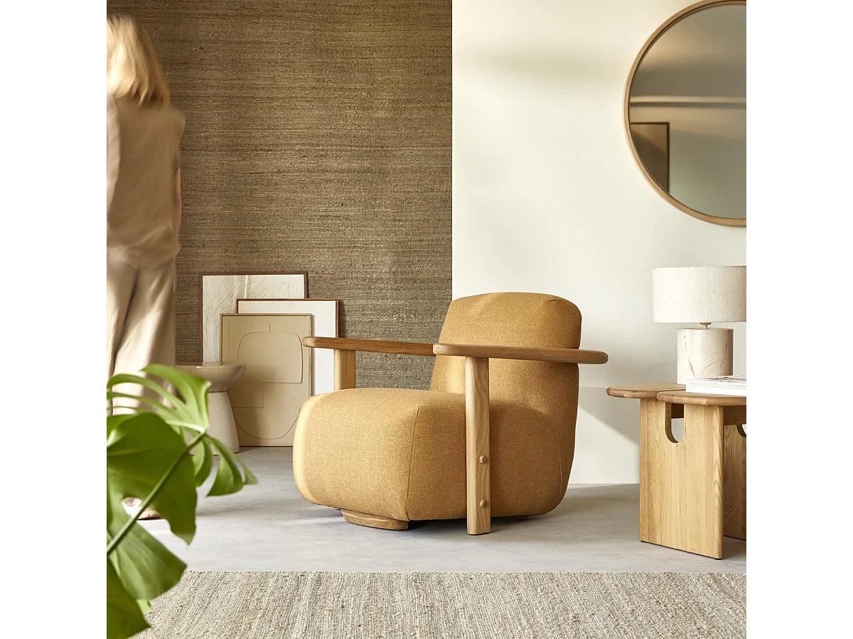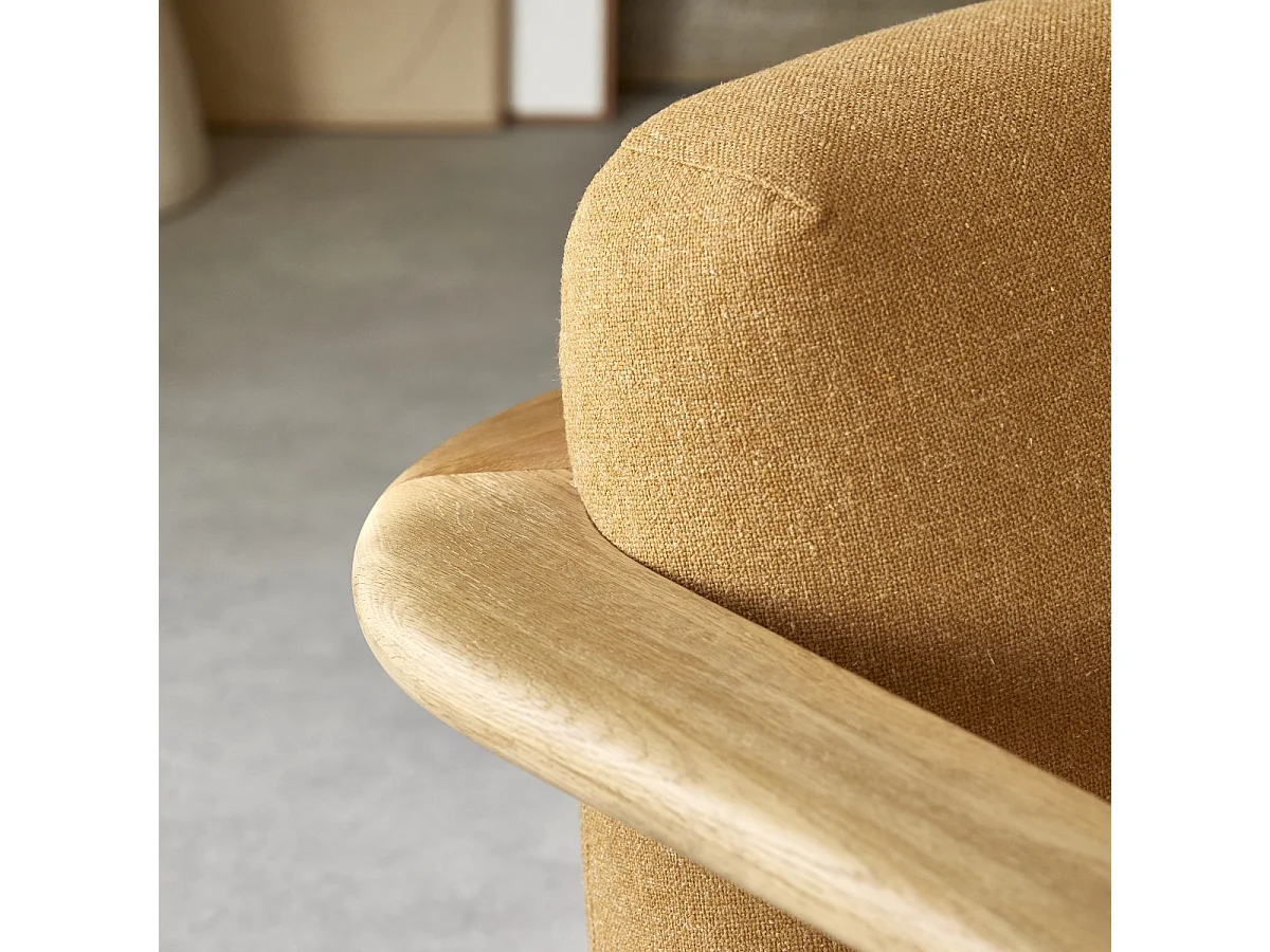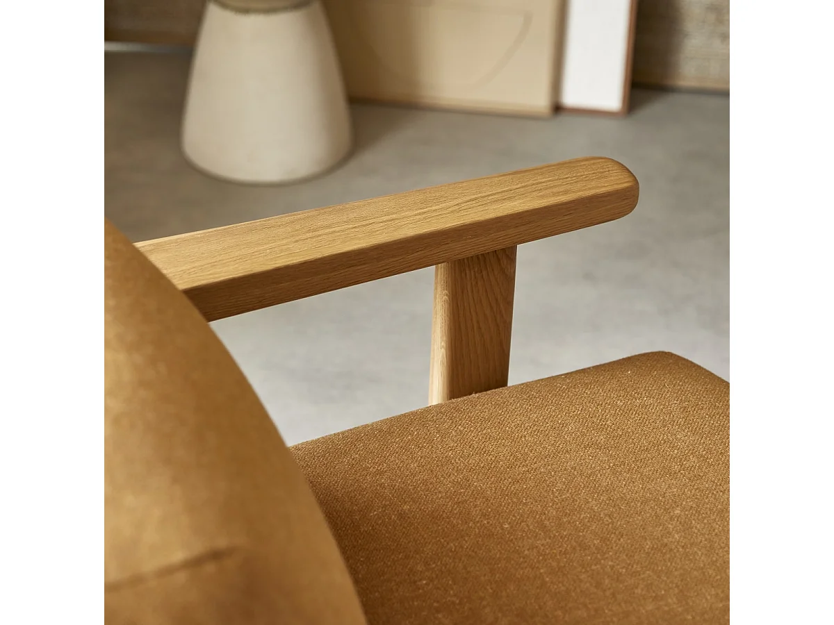 Poltrona in legno di rovere massello e tessuto cammello Tino