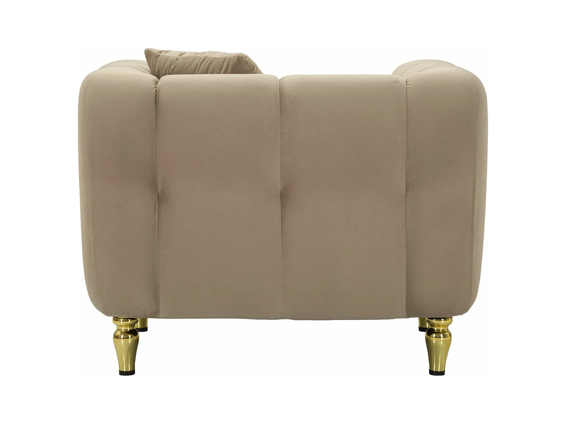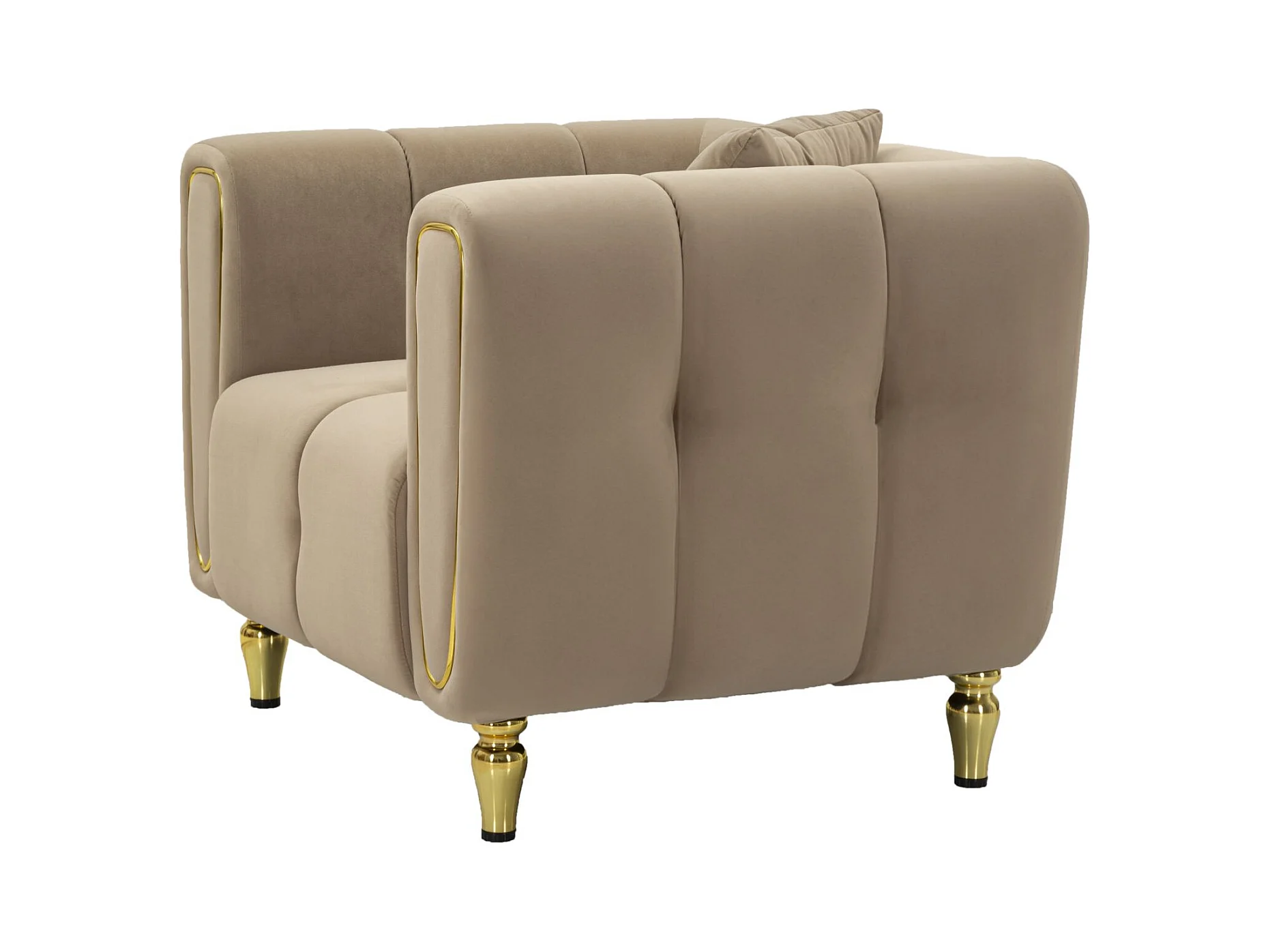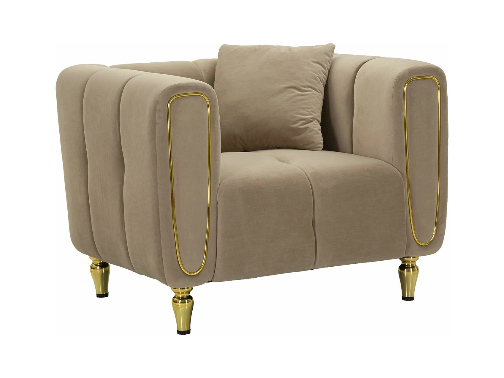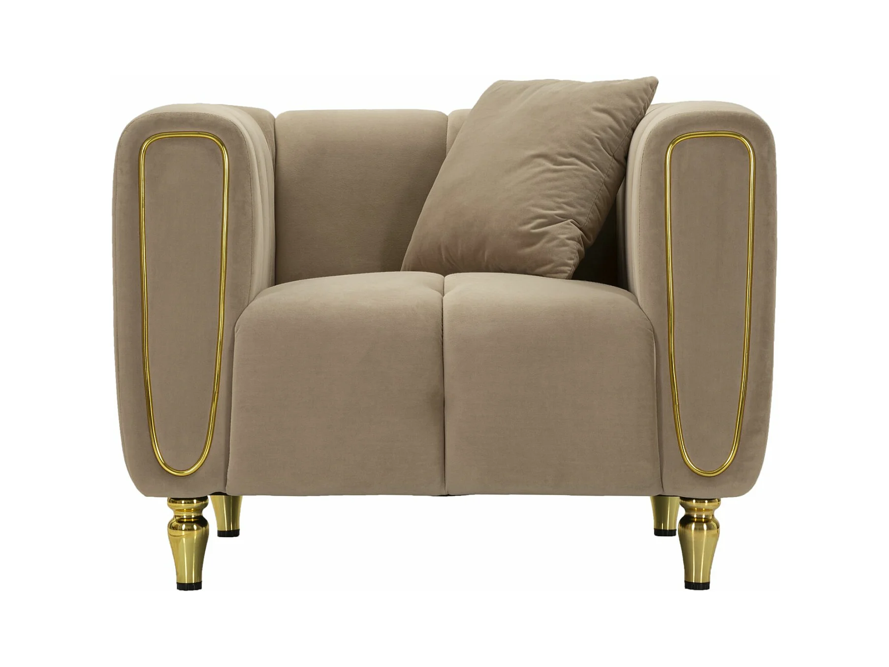 Poltrona in metallo dorato e velluto tortora con cuscino cm 97x81x72