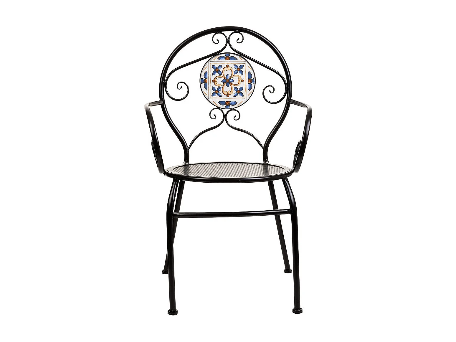 Poltrona in mosaico nero e ferro battuto 58x54x88h