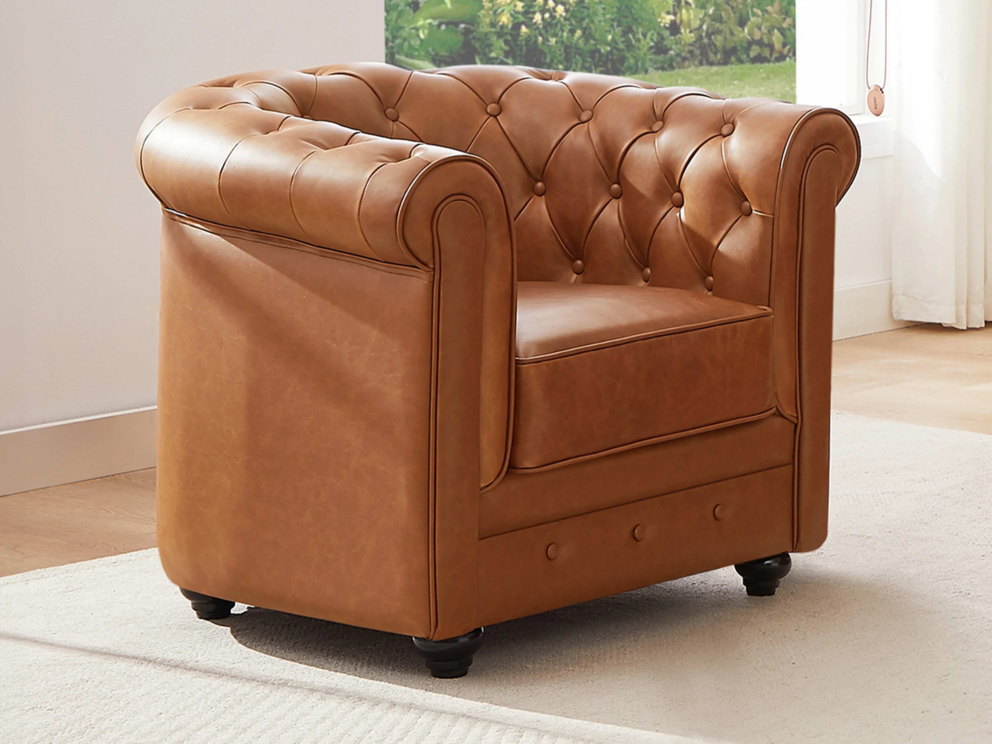 Poltrona in Pelle di Vacchetta Cammello - CHESTERFIELD