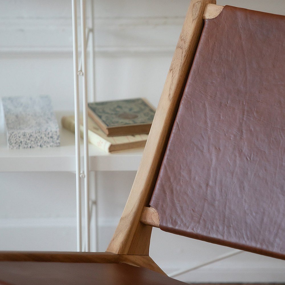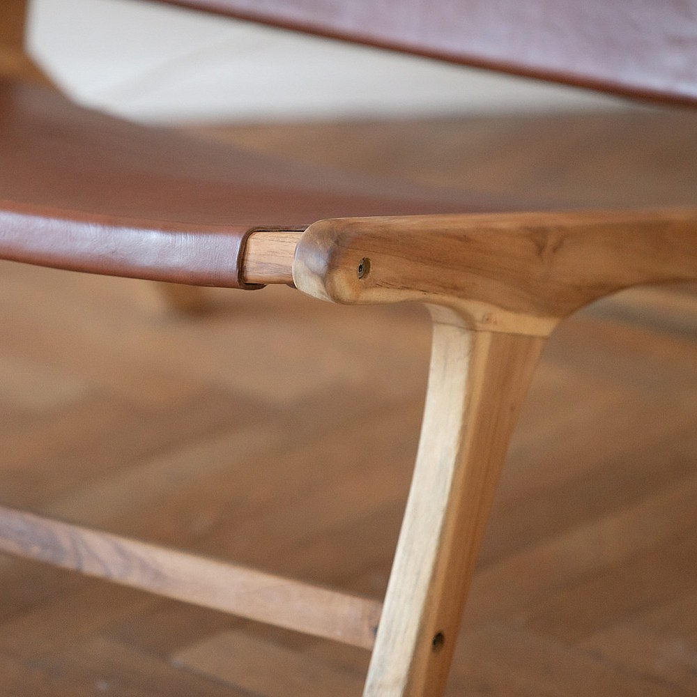 Poltrona in teak e pelle intrecciata marrone - Kuna