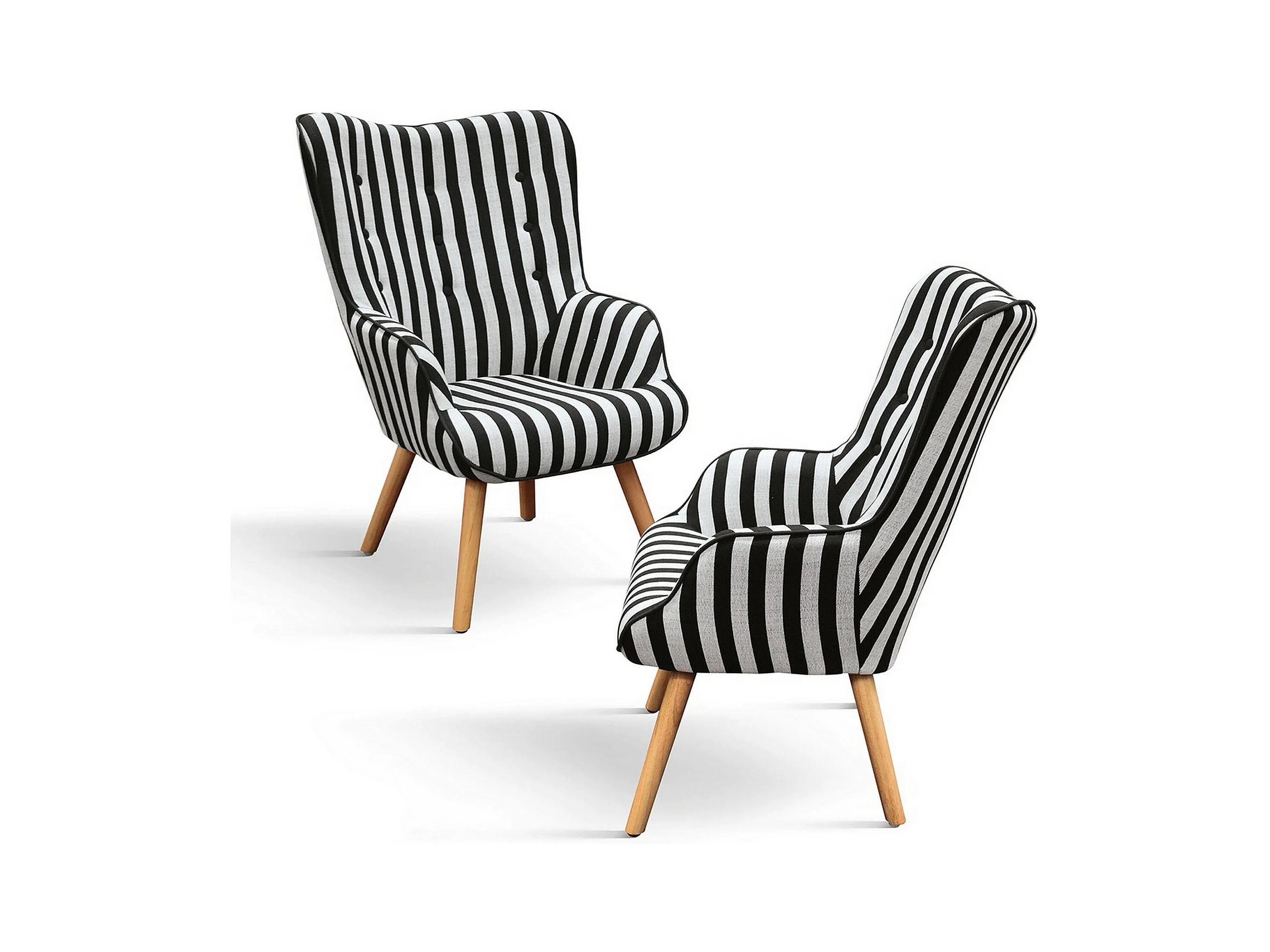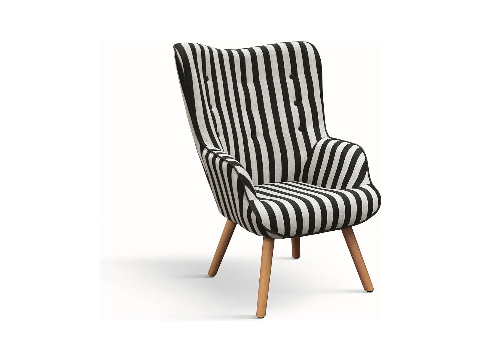 Poltrona in tessuto a righe bianco e nero e gambe in legno - HAVANA