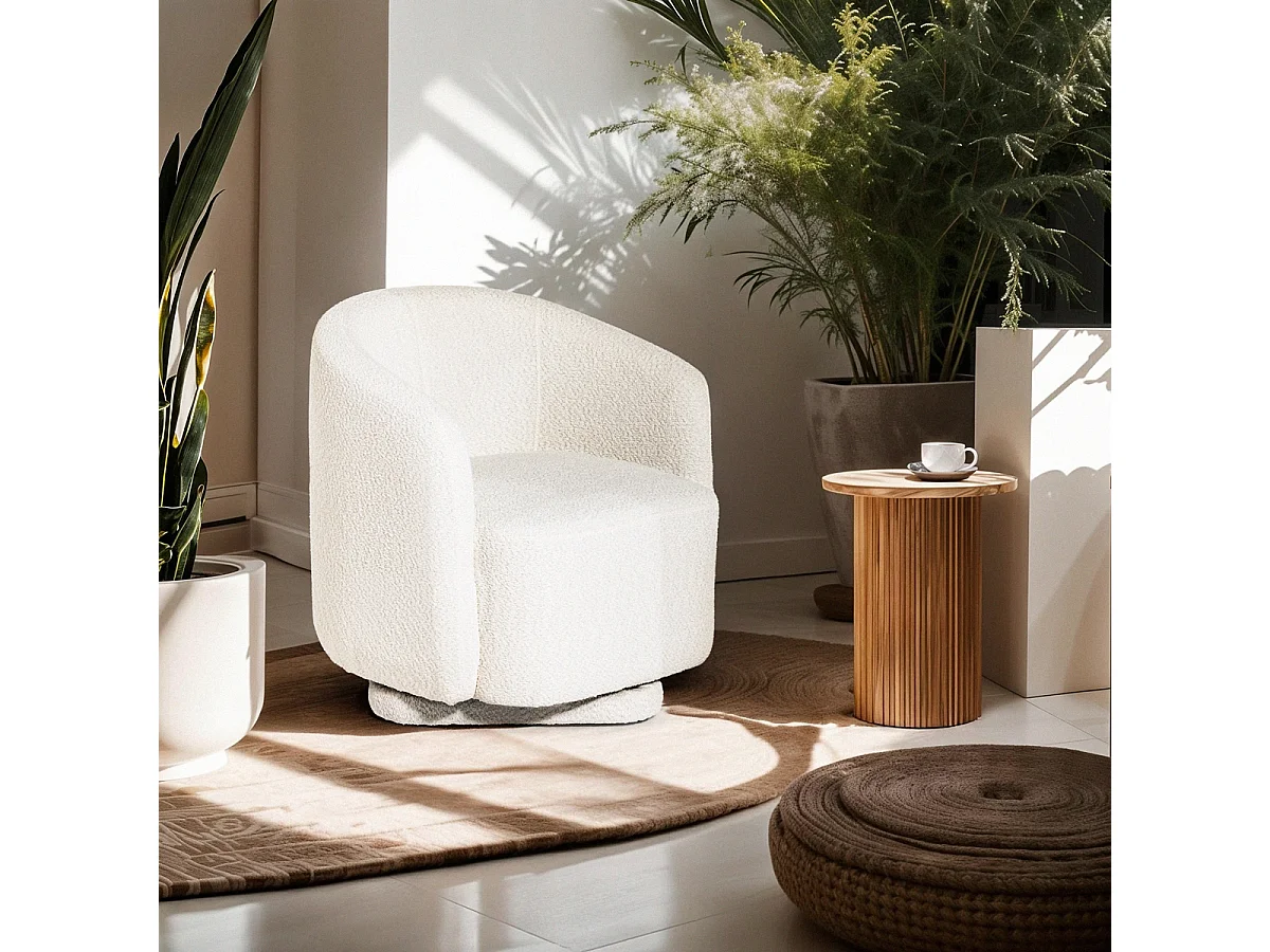 Poltrona in tessuto bouclé per soggiorno salotto moderna girevole Orav - Bianco