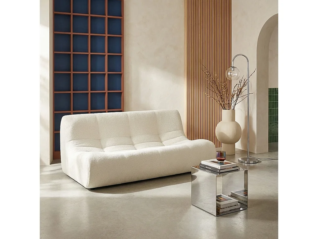 Poltrona in tessuto bouclé strutturato, 3 posti, bianco