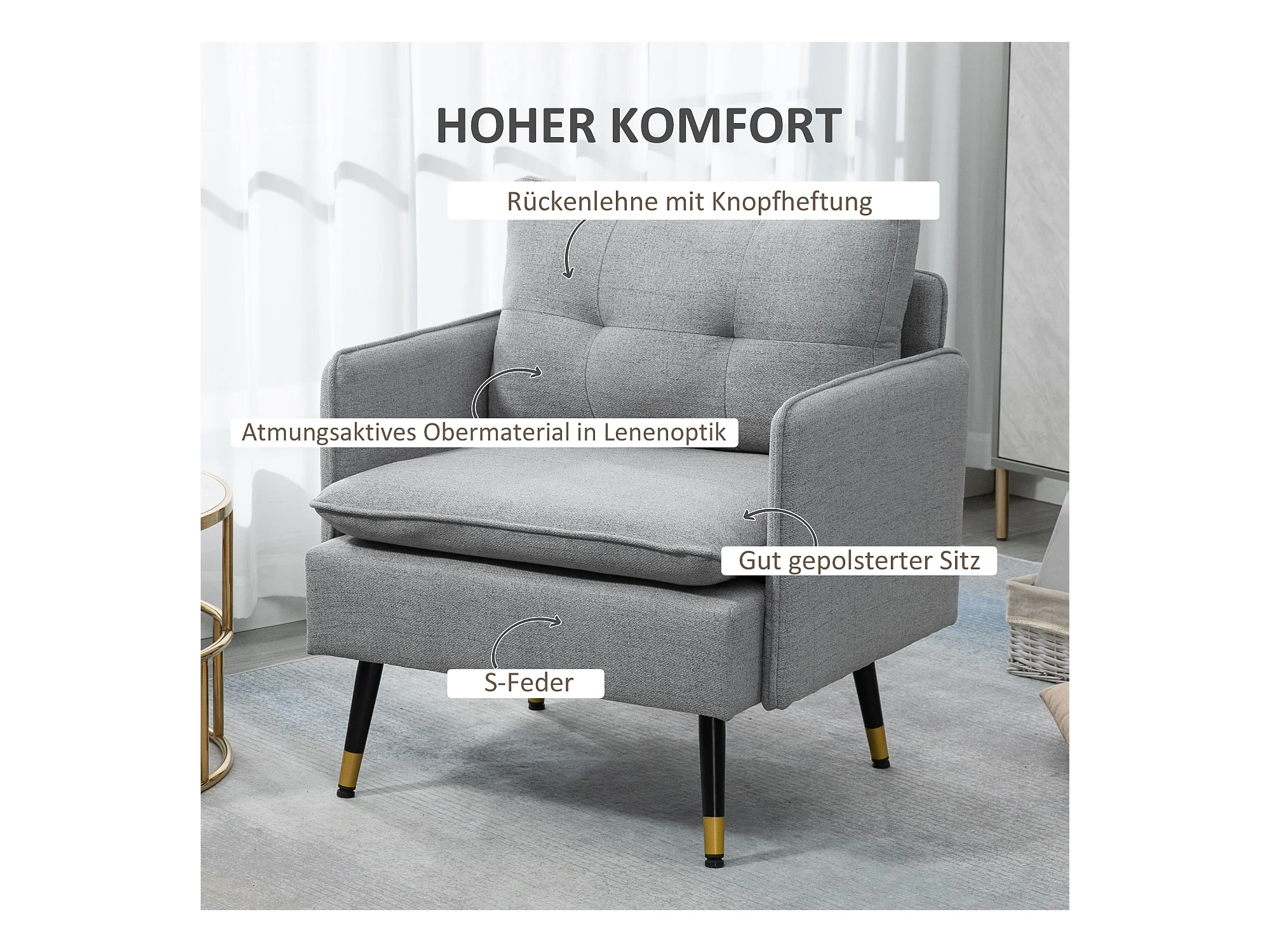 Poltrona in tessuto di lino, poltrona con cuscino, struttura in acciaio, fino a 120 kg, design elegante e confortevole