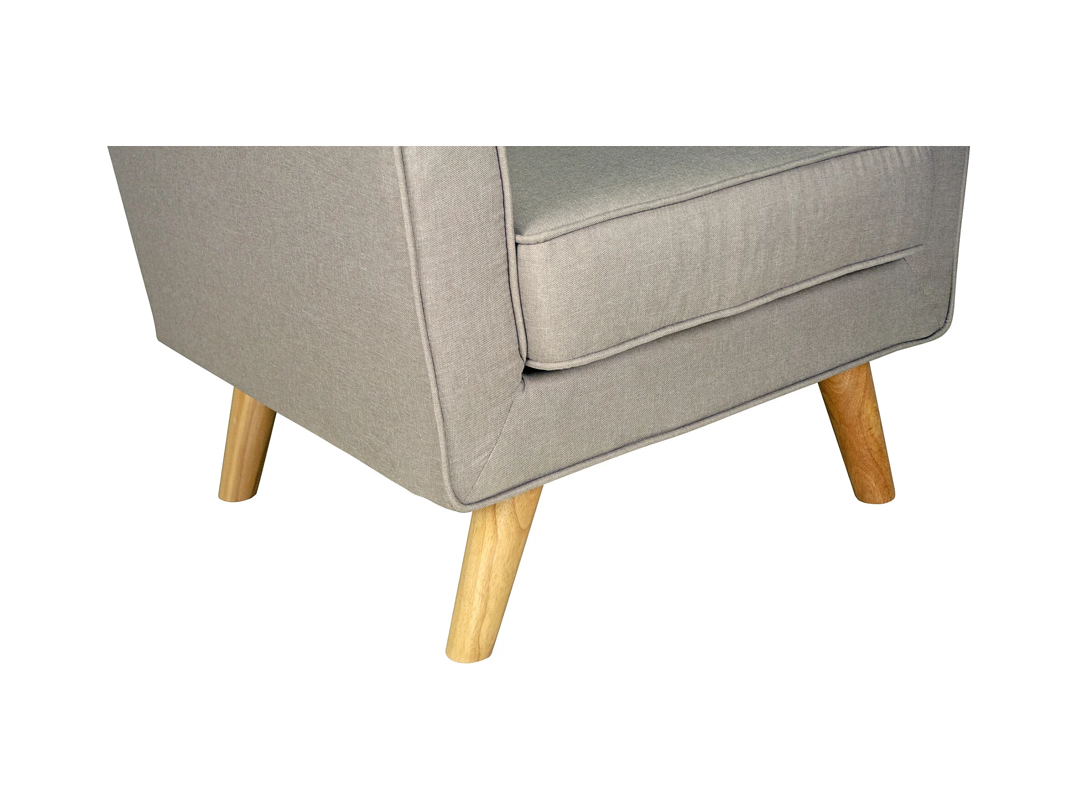 Poltrona in tessuto tortora e piedi in legno naturale mod. Narciso