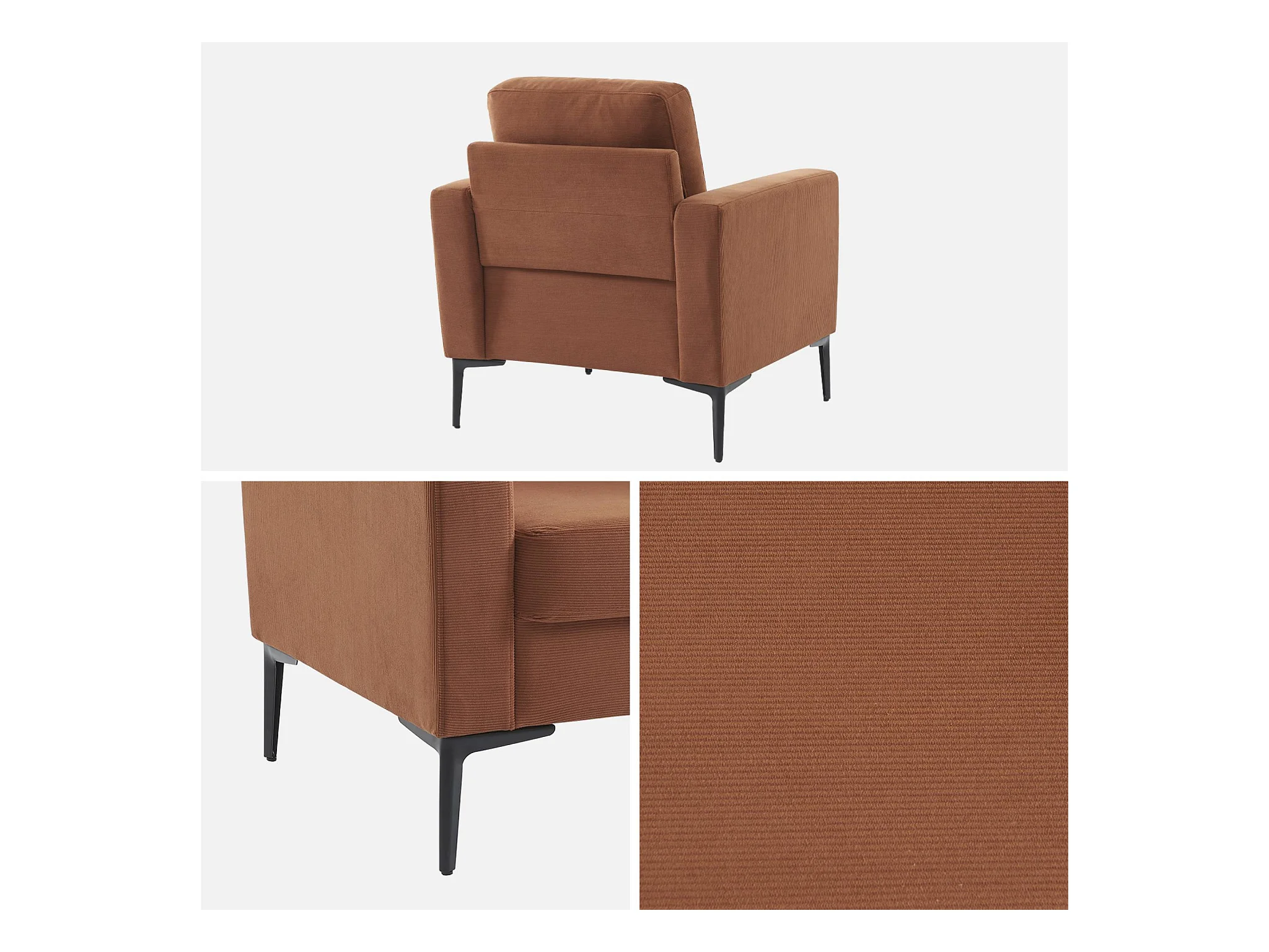 Poltrona in velluto a coste, gambe in metallo, terracotta