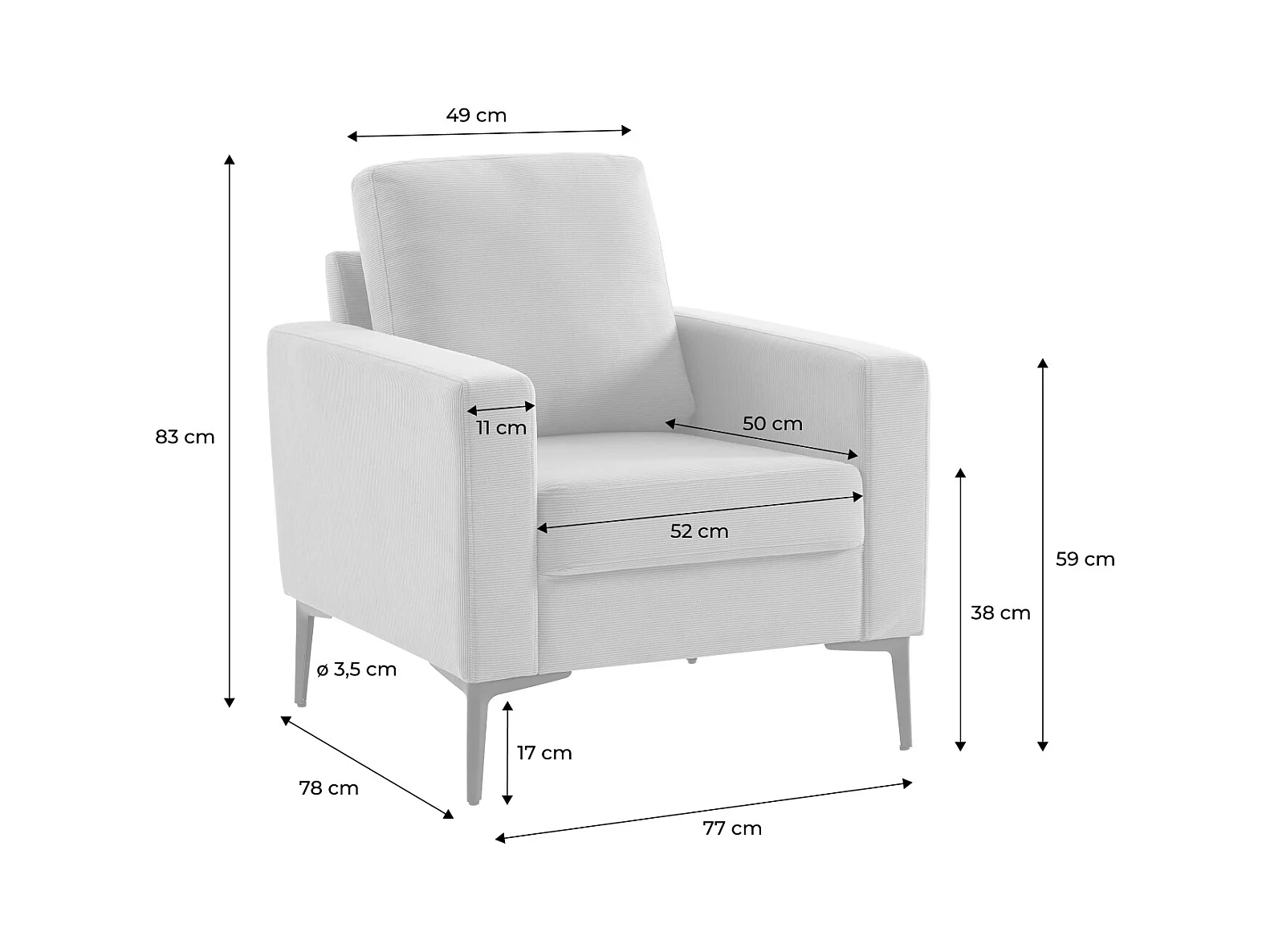 Poltrona scandinava per bambini in velluto a coste e legno di gomma,
