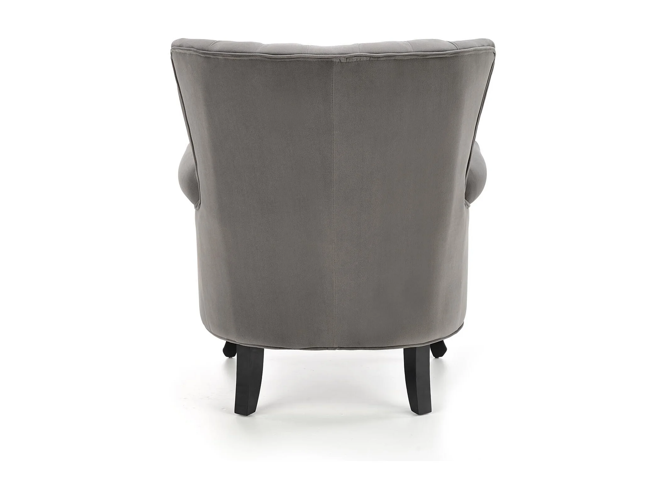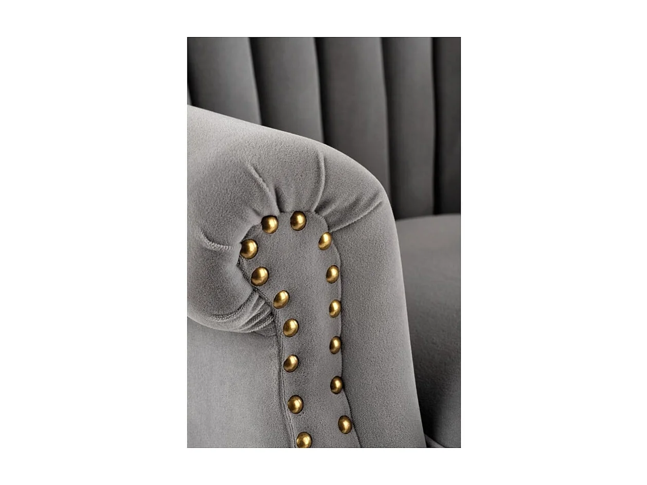 Poltrona in velluto grigio con braccioli borchiati e gambe in legno massiccio MEDICIS