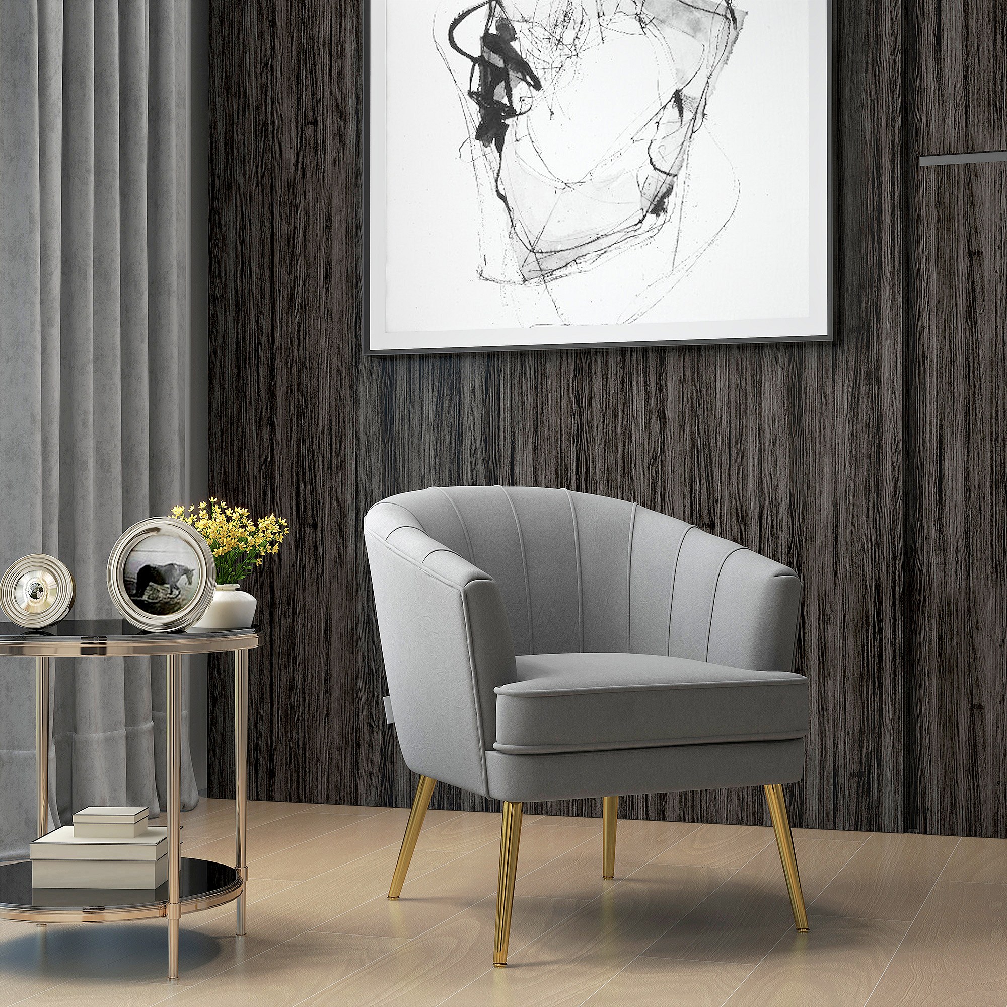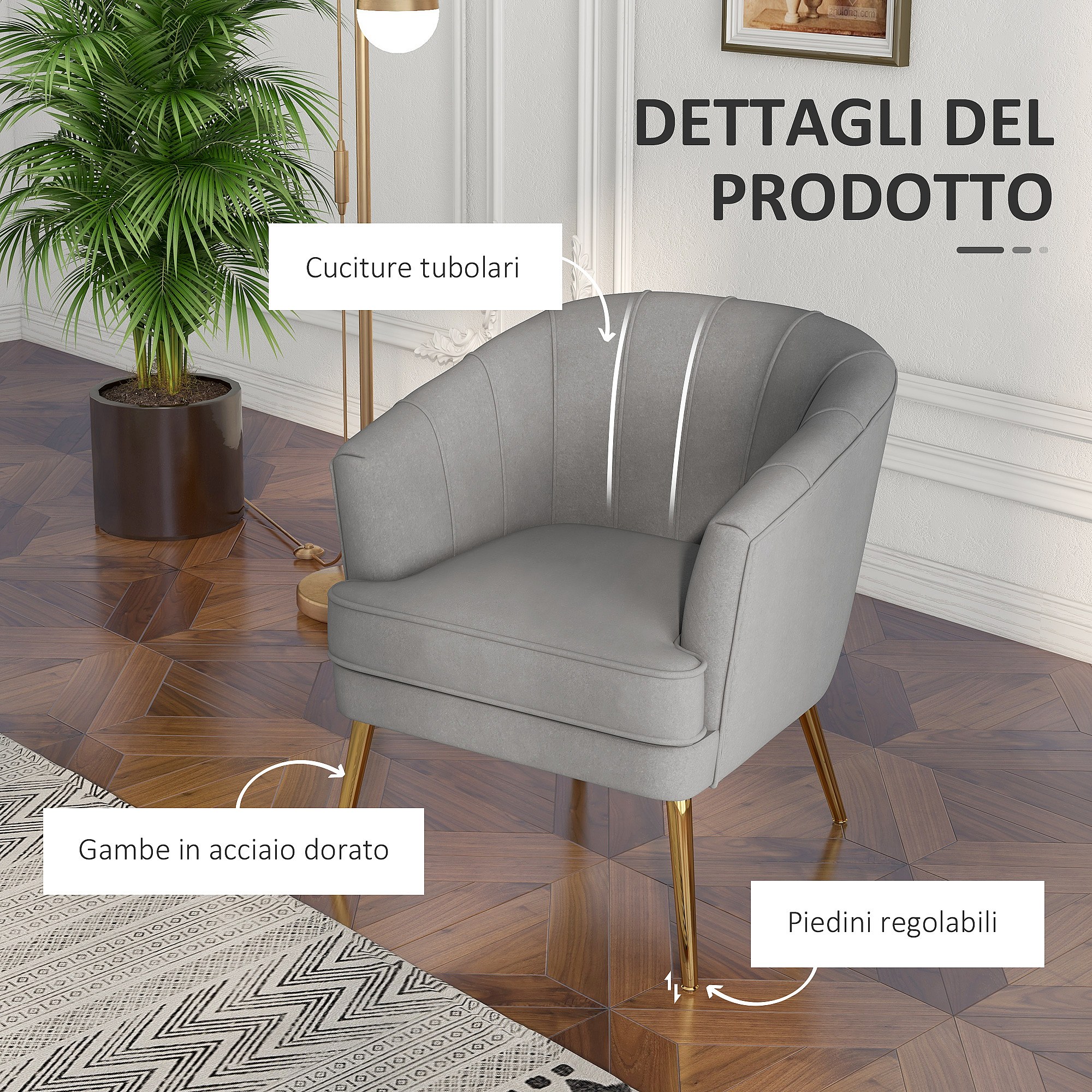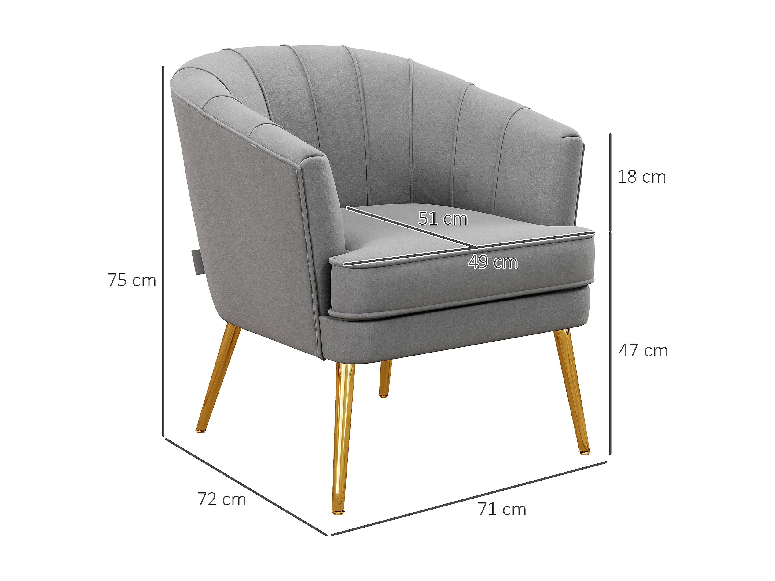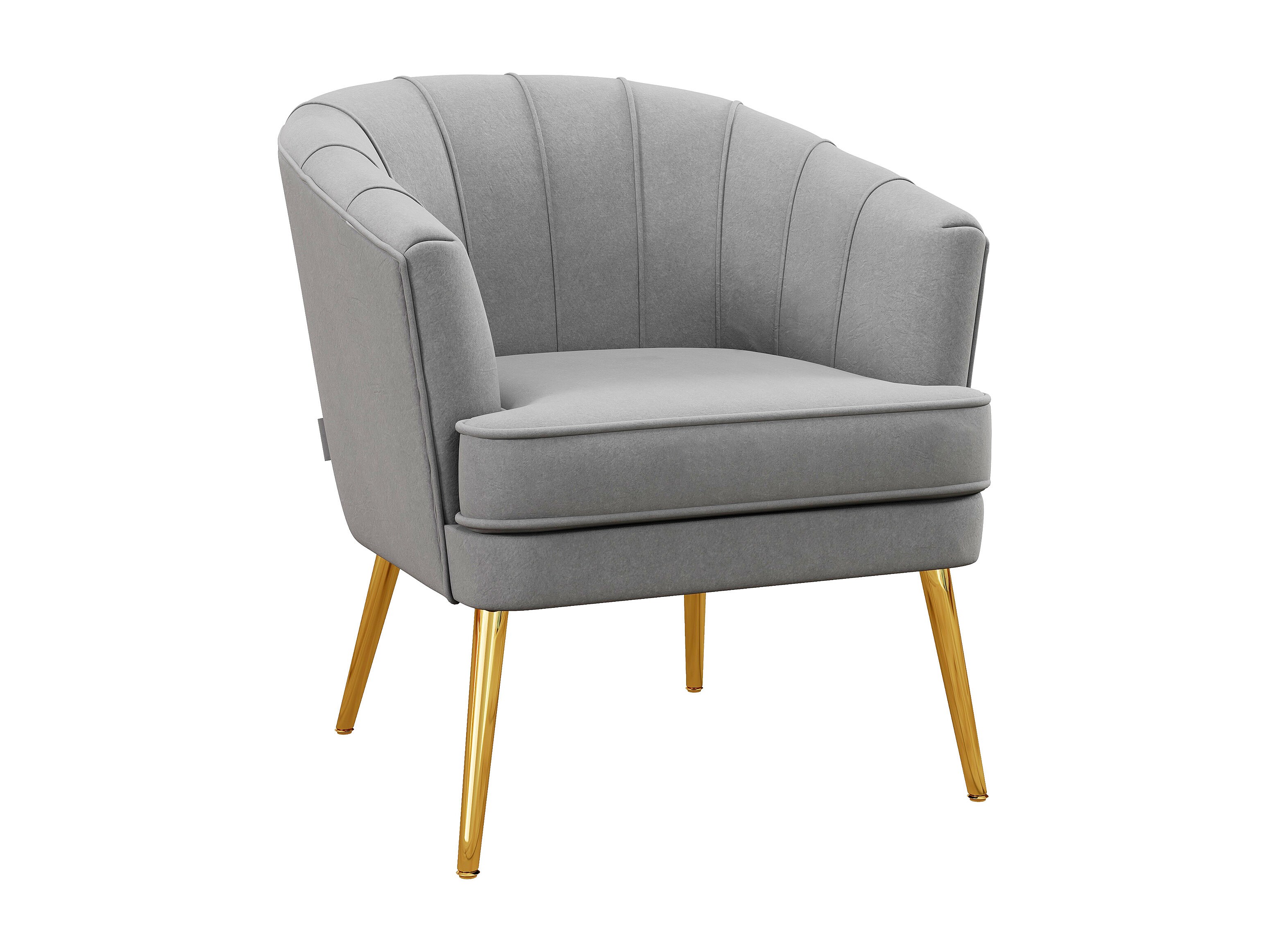 Poltrona in velluto grigio con gambe dorate in acciaio