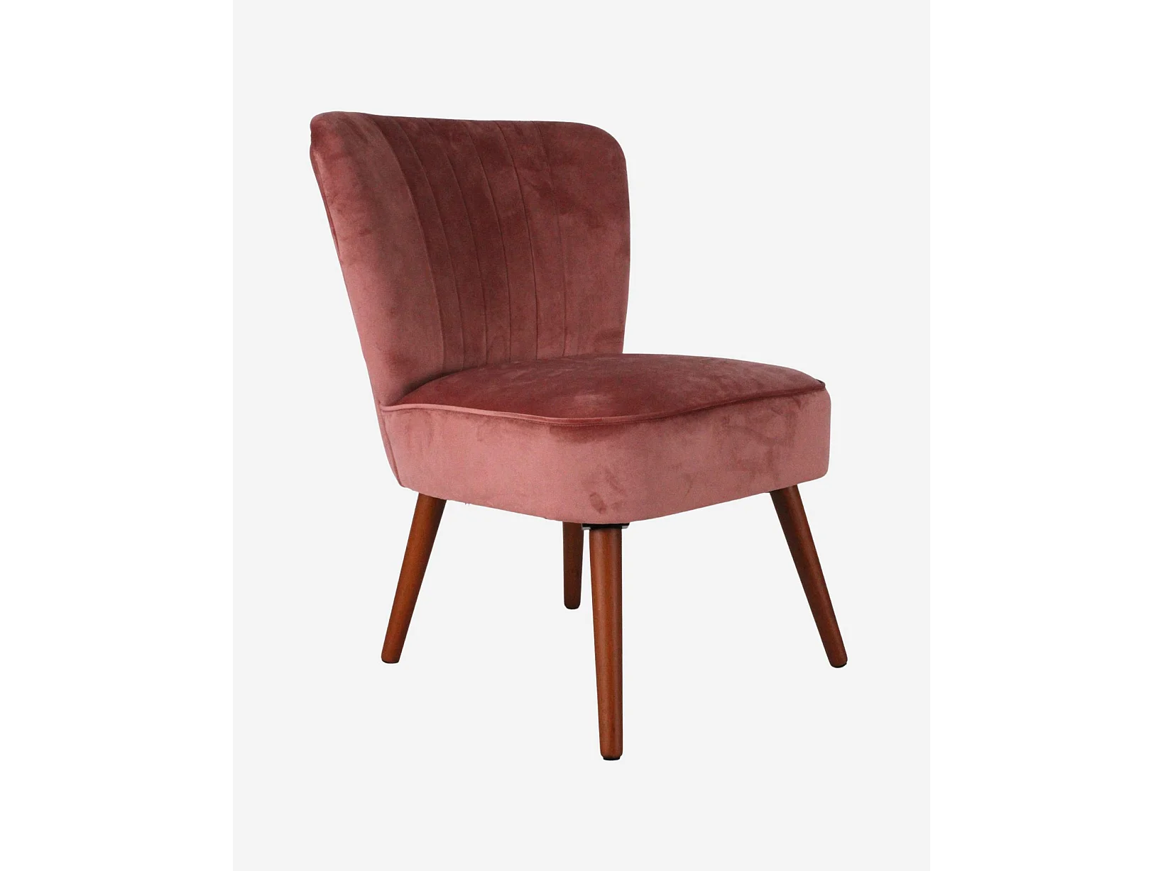 Poltrona in velluto rosa con piedi in legno - 74x70xH85 cm, altezza seduta 43 cm - Collezione VELUREA
