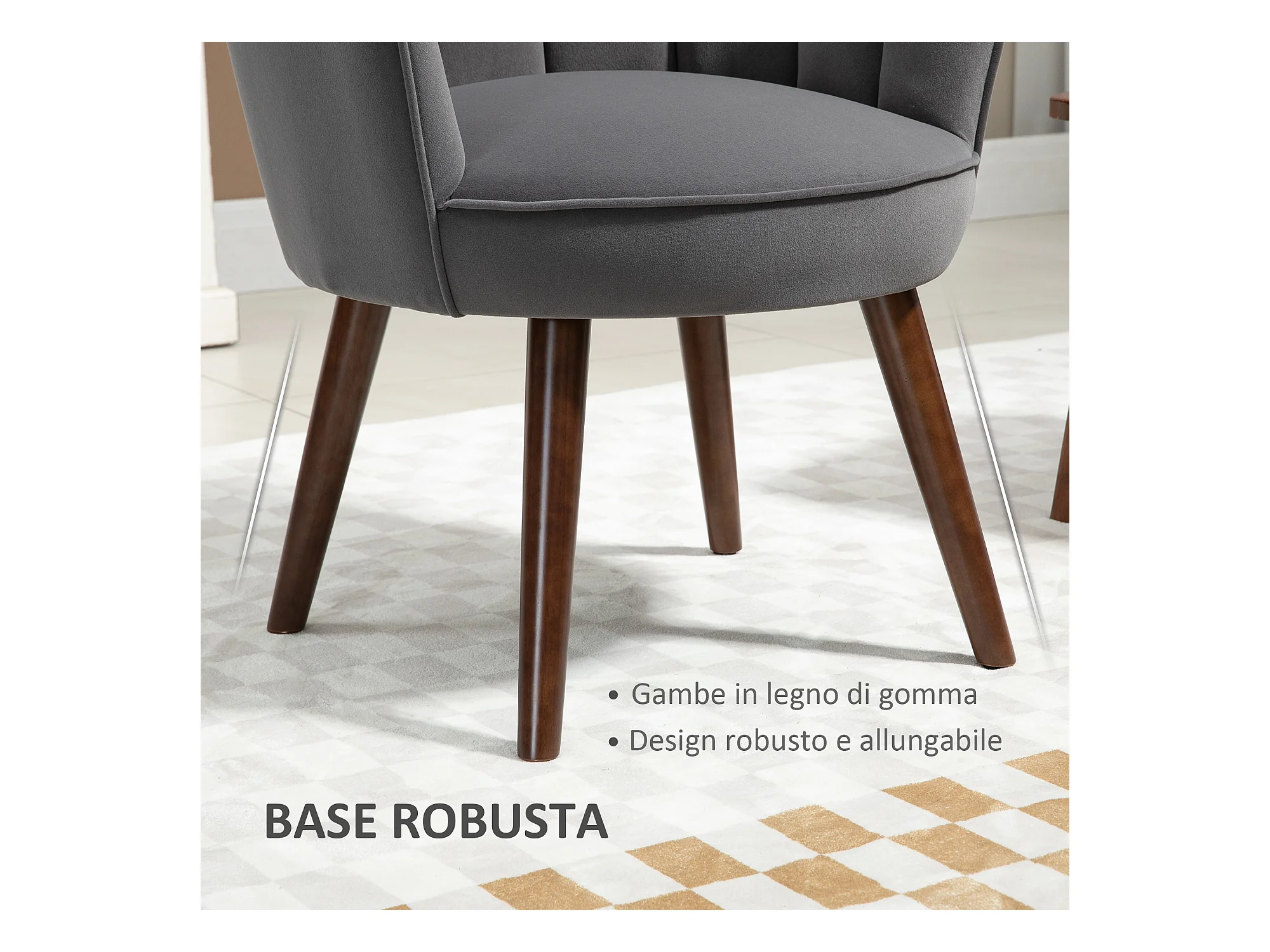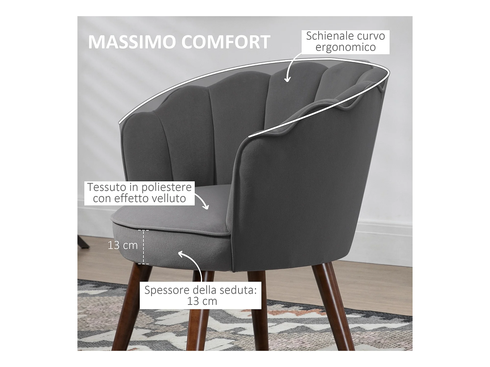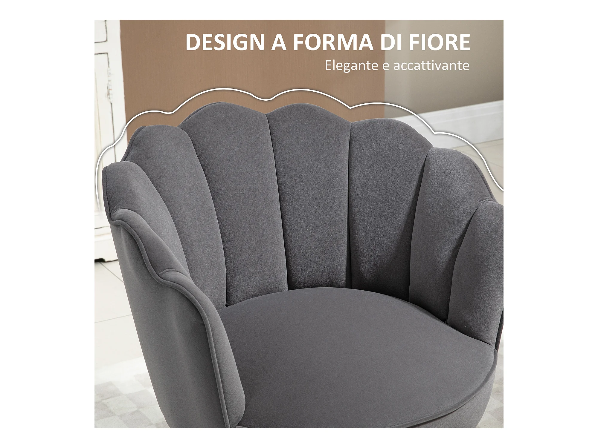 Poltrona in velluto schienale a conchiglia 66x66x78.5cm grigio