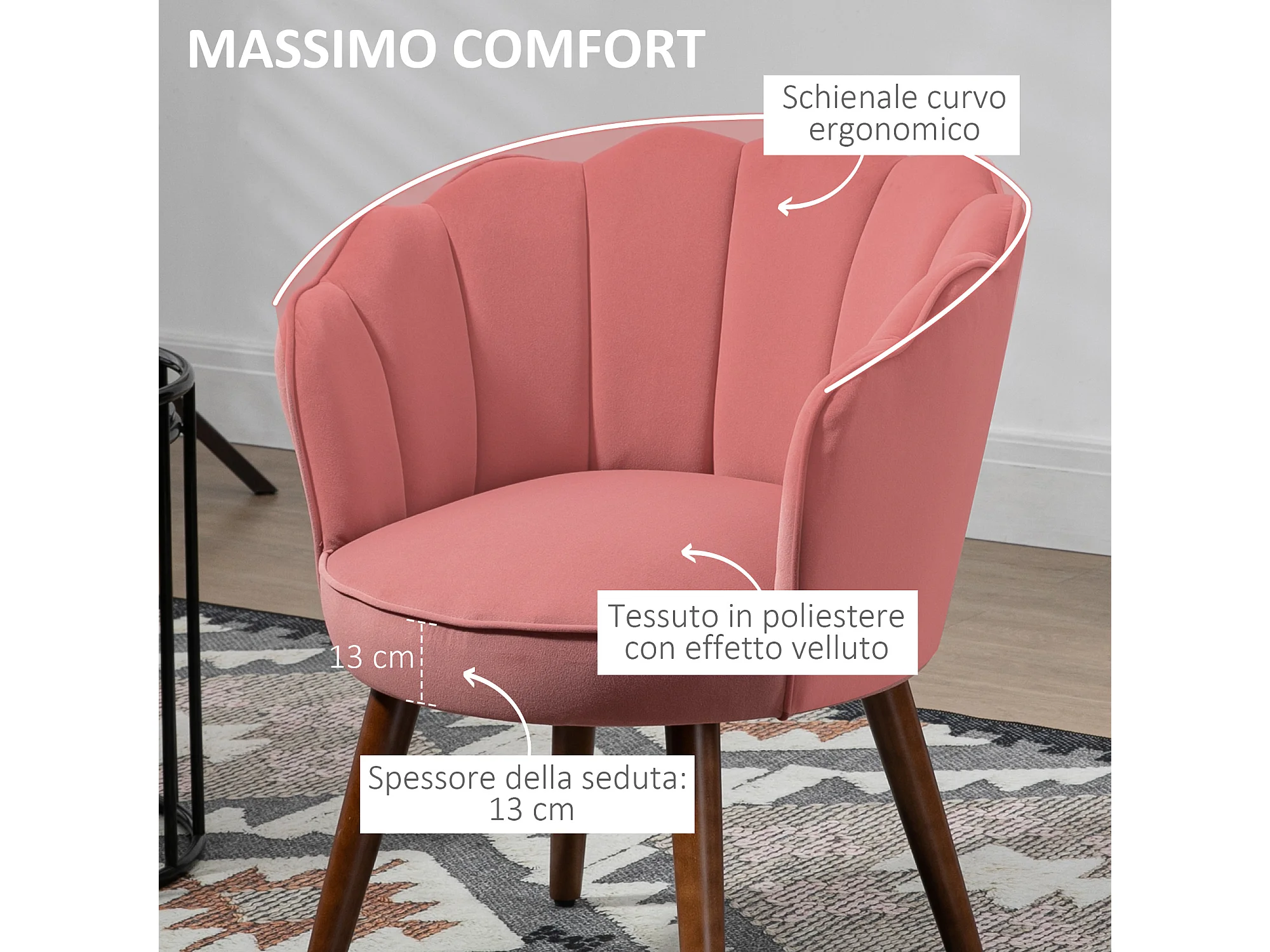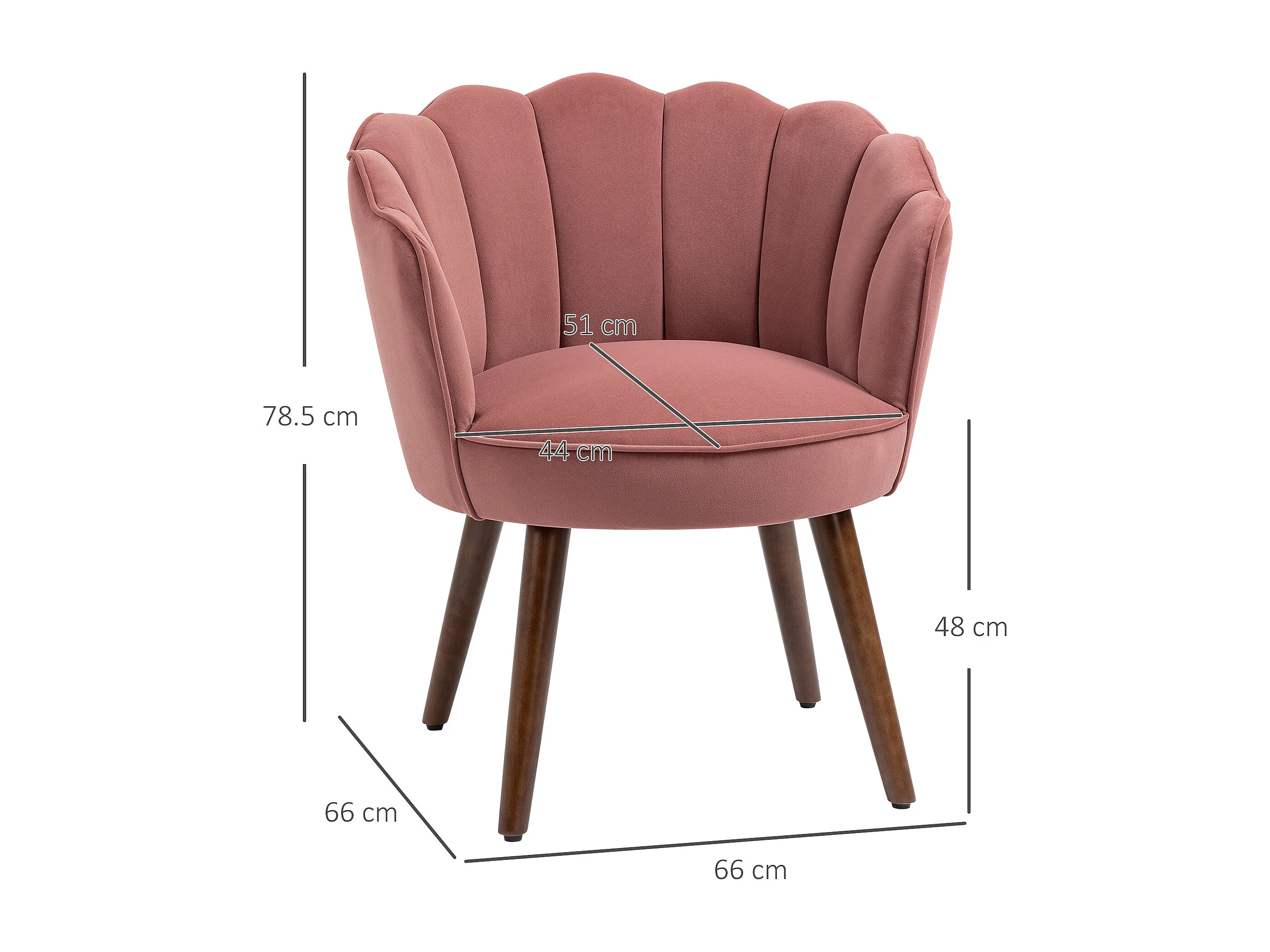 Poltrona in velluto schienale a conchiglia 66x66x78.5cmrosa