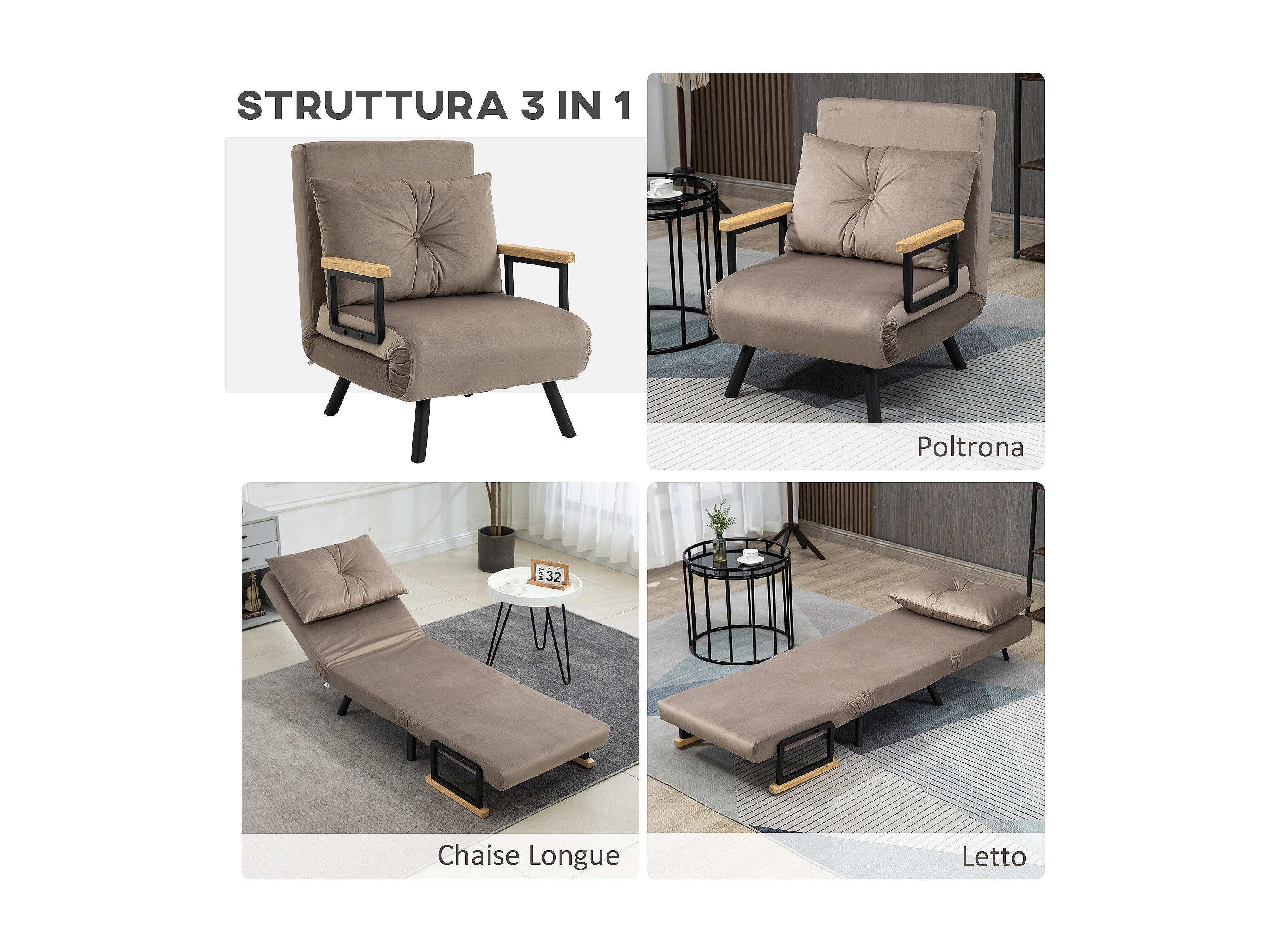 Poltrona letto 3 in 1 con schienale reclinabile grigio chiaro
