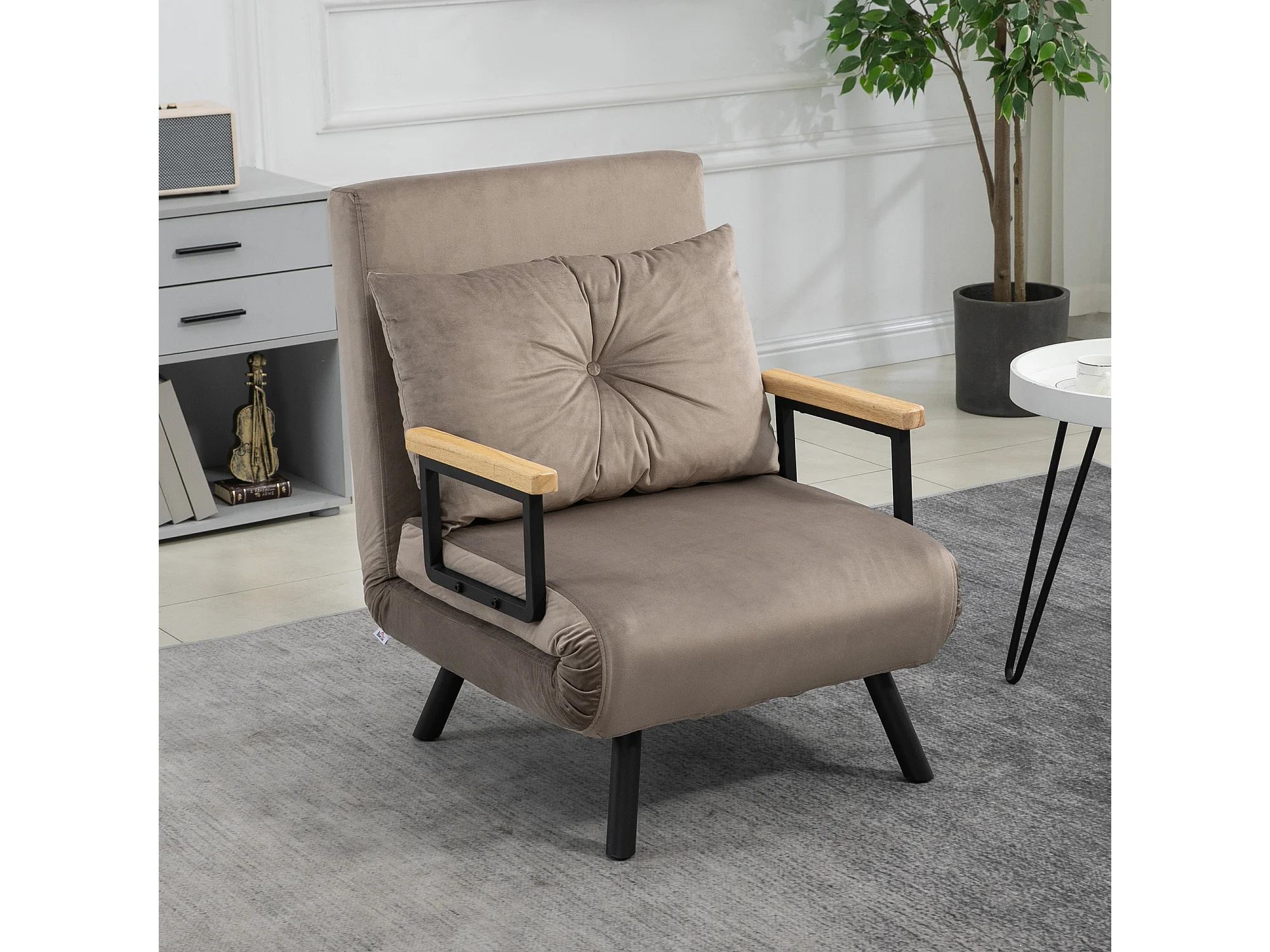 Poltrona letto con 2 cuscini e spazio portaoggetti marrone chiaro