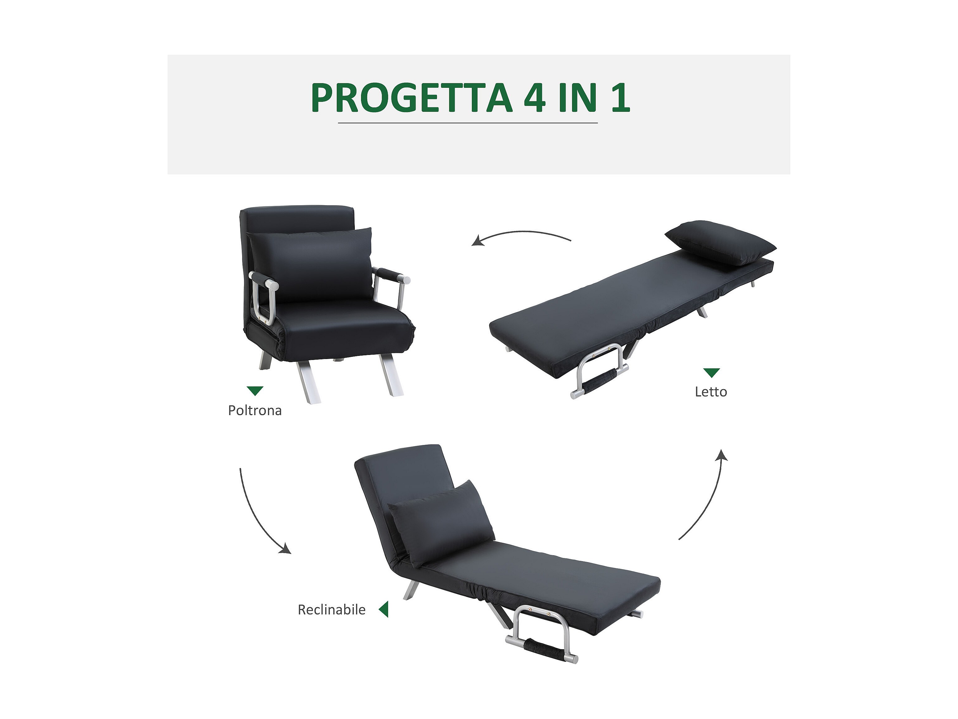 Poltrona letto con schienale reclinabile su 5 posizioni nero