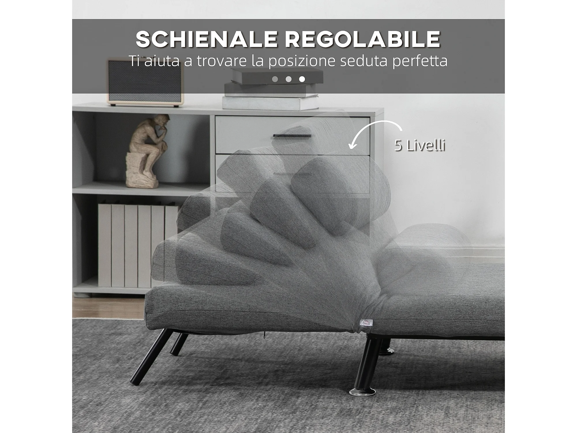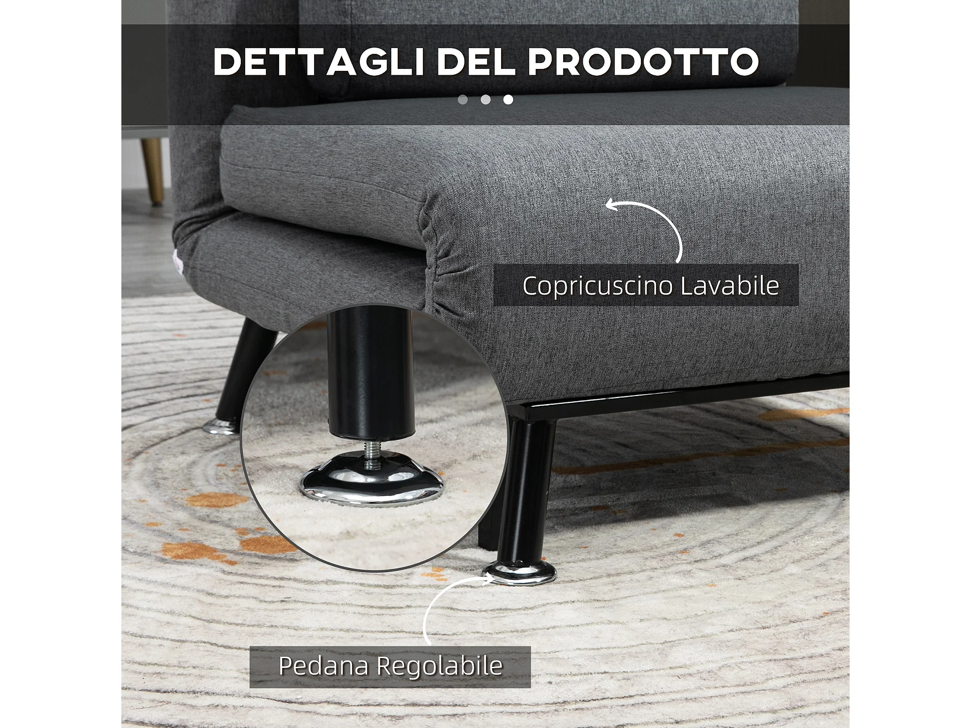 Poltrona letto con schienale regolabile in 5 posizioni grigio