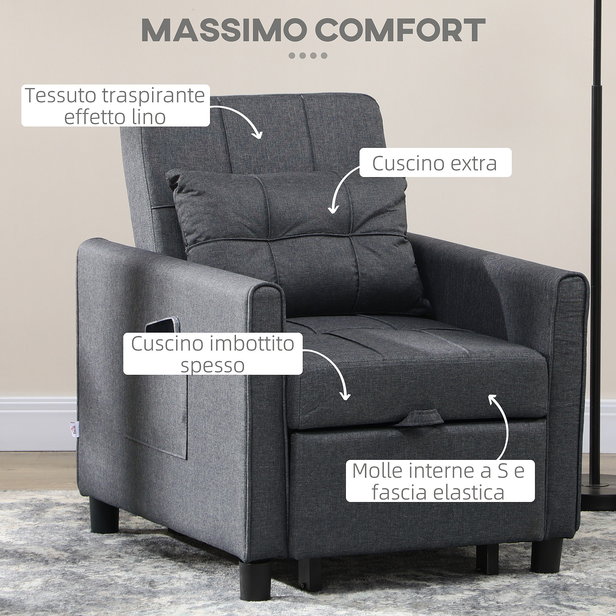 Poltrona letto singolo 3 reclinazioni con cuscino extra grigio