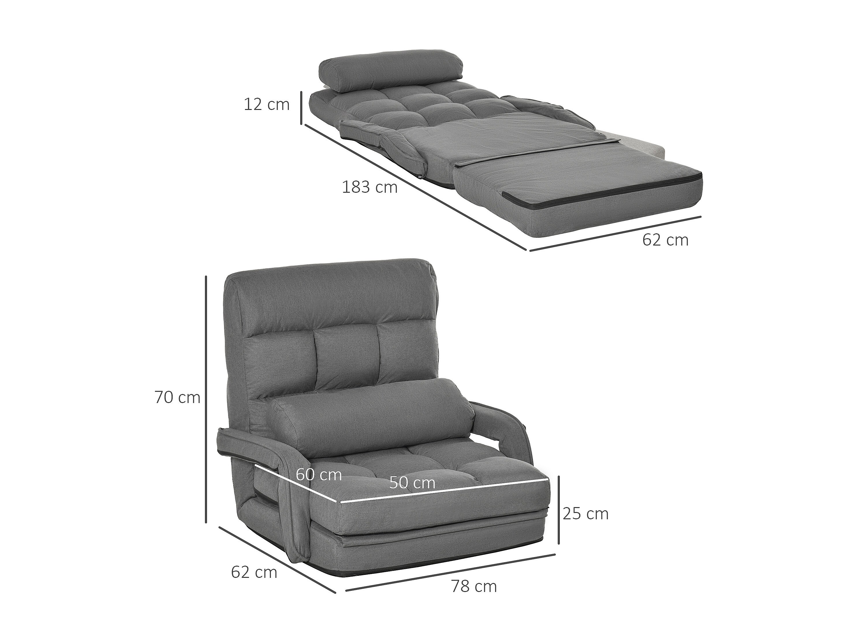 Poltrona letto singolo con schienale reclinabile su 5 livelli