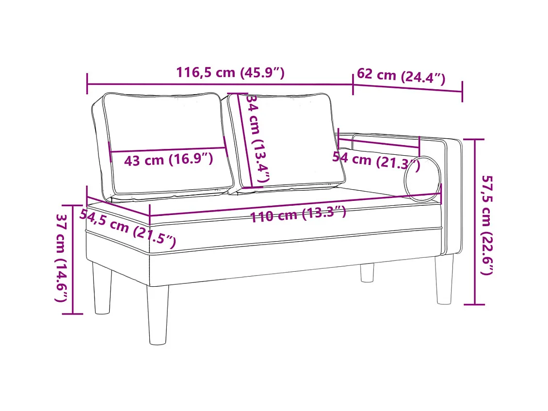 Chaise longue con cuscini in tessuto rosso bordeaux