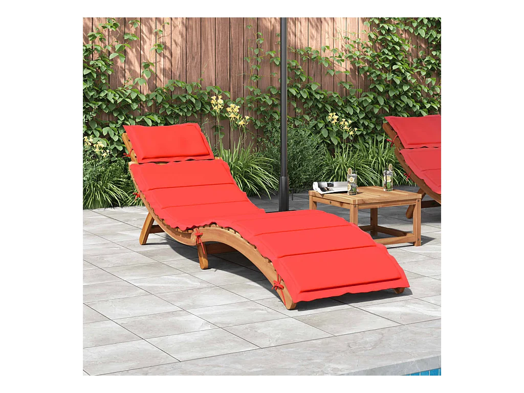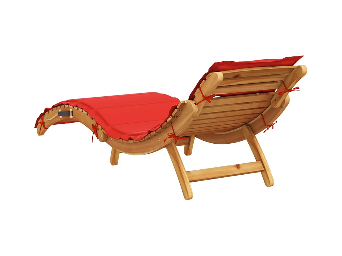 Poltrona lounge con cuscino rosso in legno massello di acacia