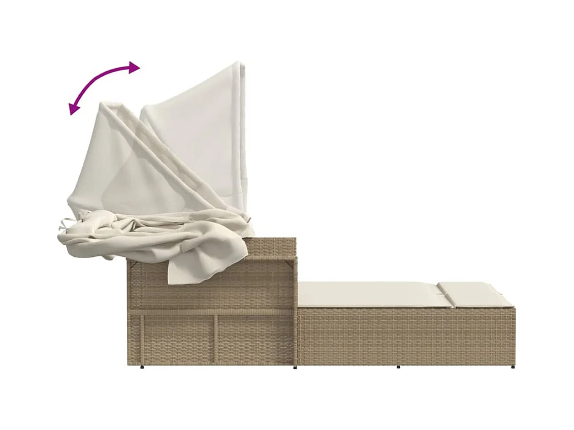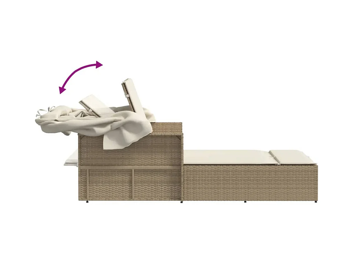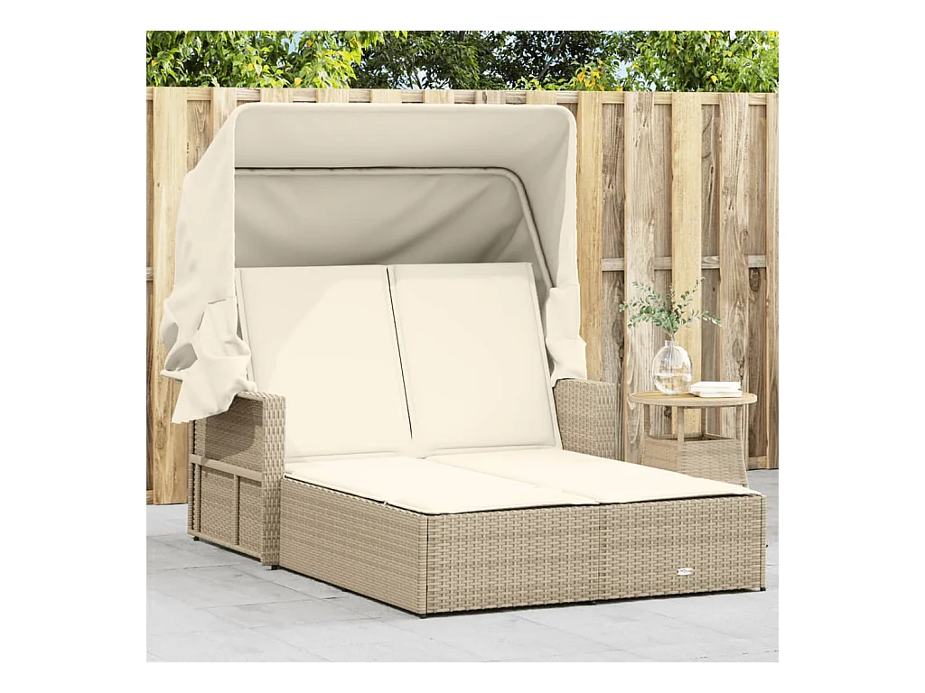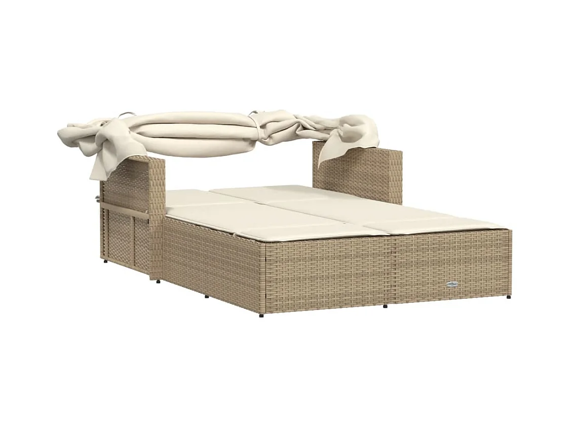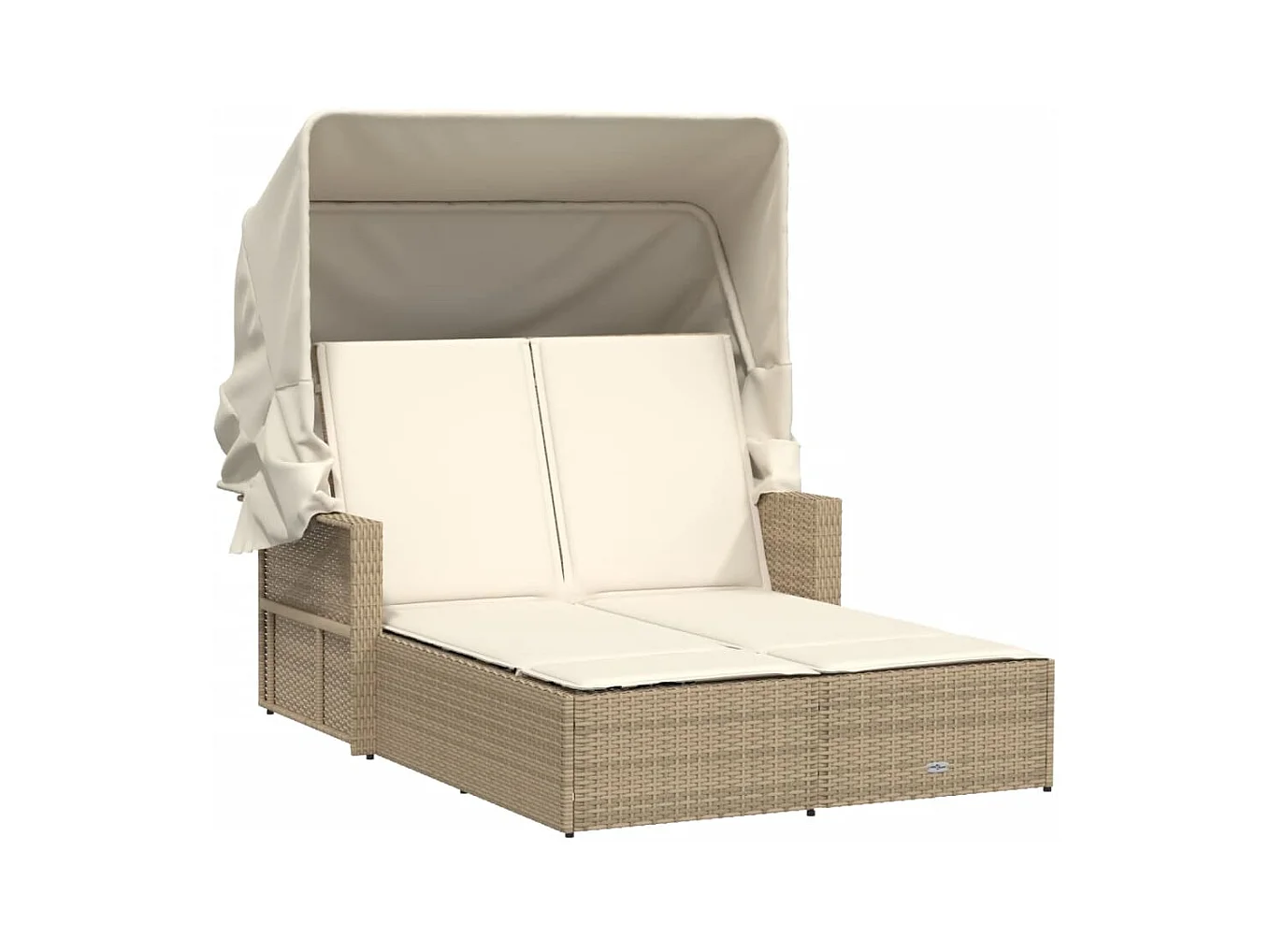 Poltrona lounge doppia con baldacchino e cuscini in polyrattan beige