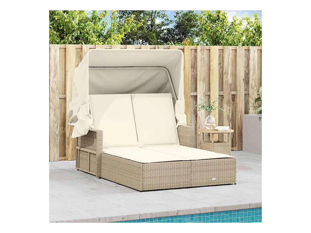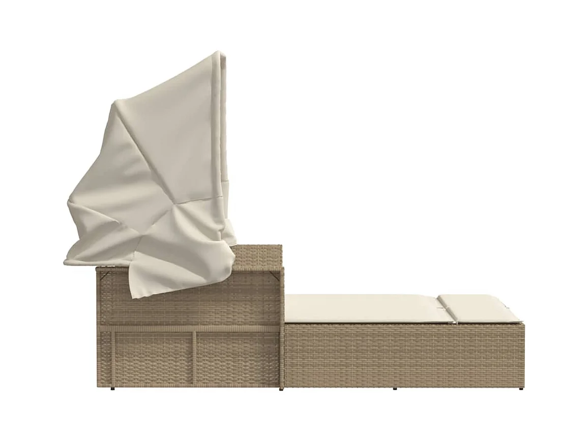 Poltrona lounge doppia con tetto e tende in resina intrecciata beige