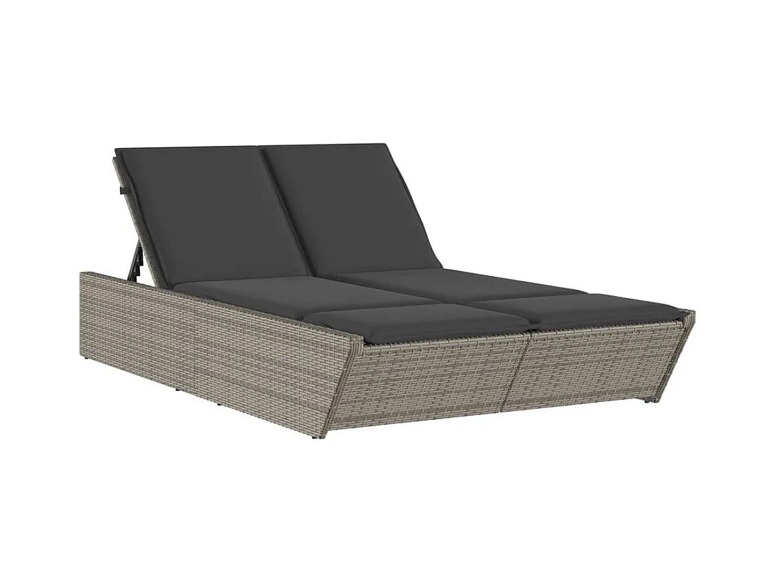 Poltrona lounge doppia con cuscini in resina intrecciata grigia