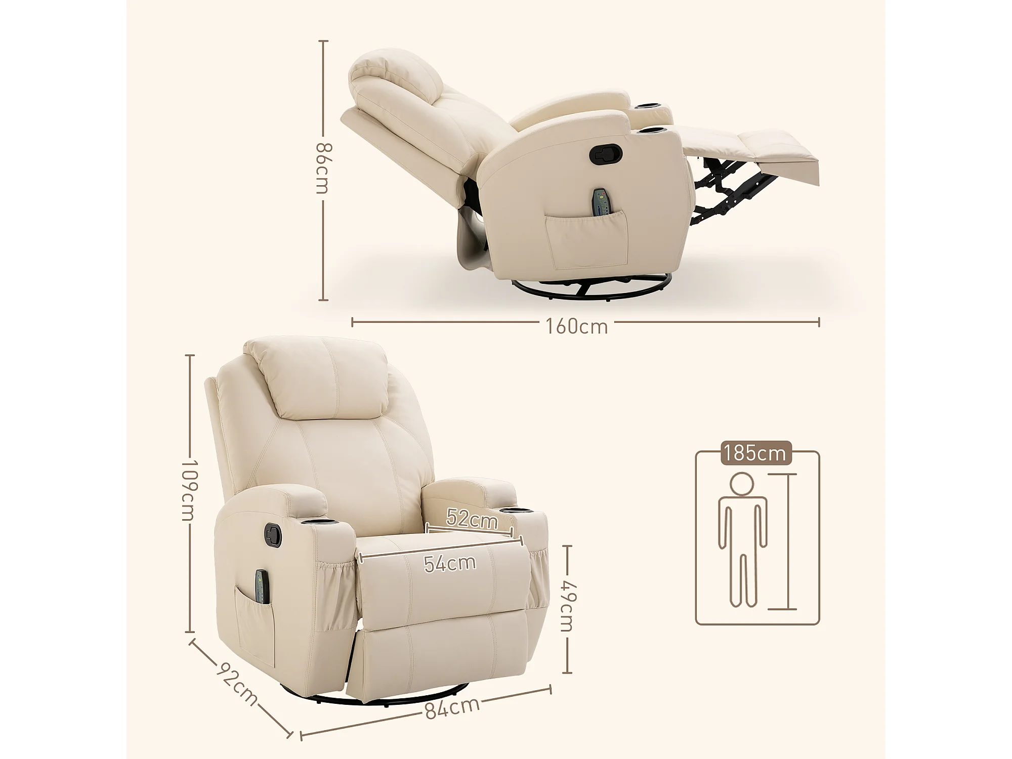 Poltrona da Massaggiante Reclinabile Crema Similpelle