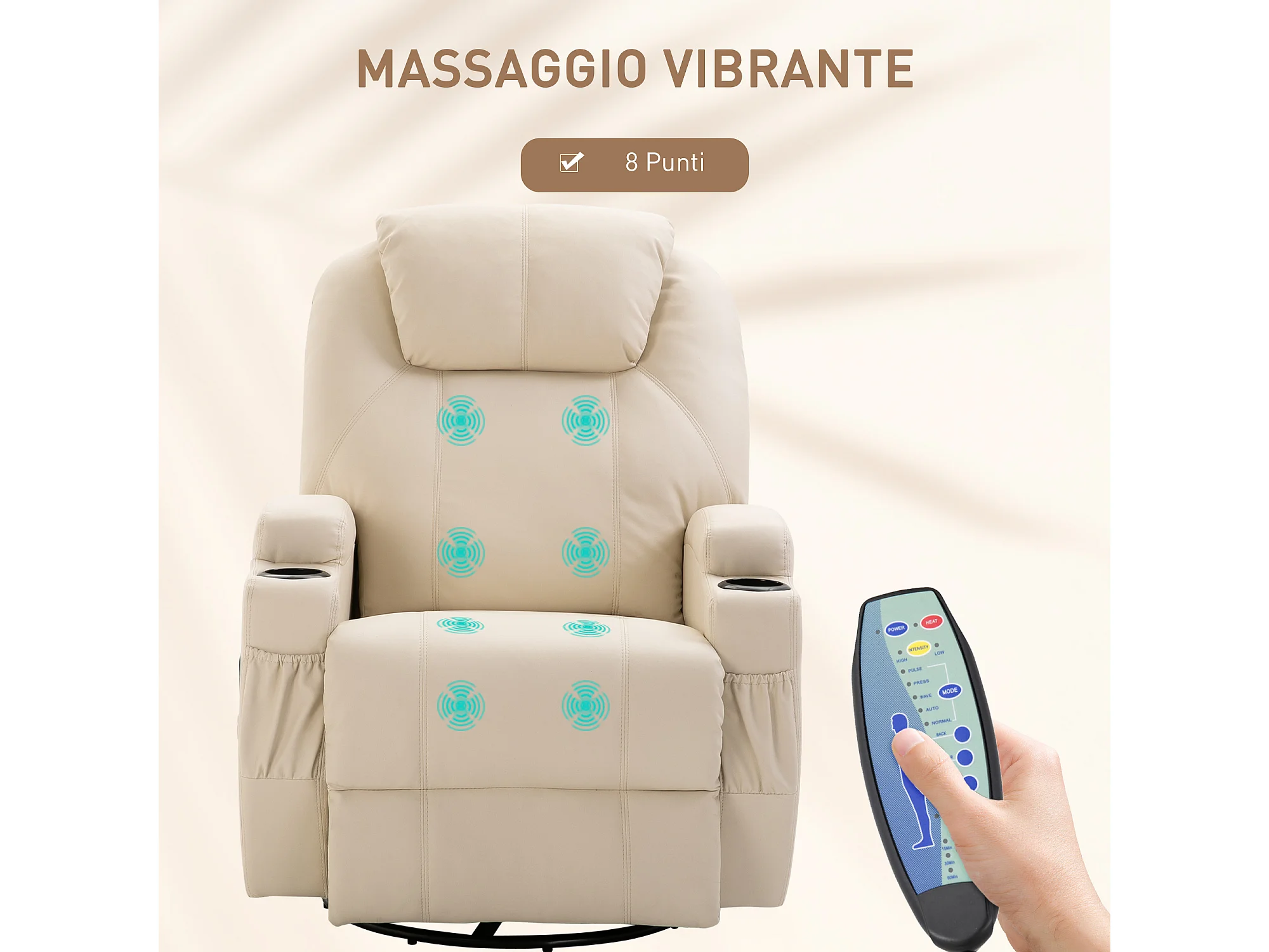 Poltrona massaggiante a 8 punti con telecomando in finta pelle beige