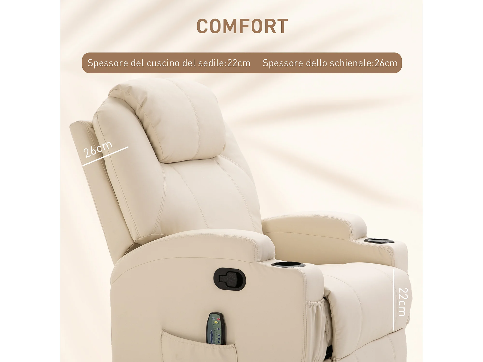 Poltrona massaggiante reclinabile elettrica in similpelle color crema