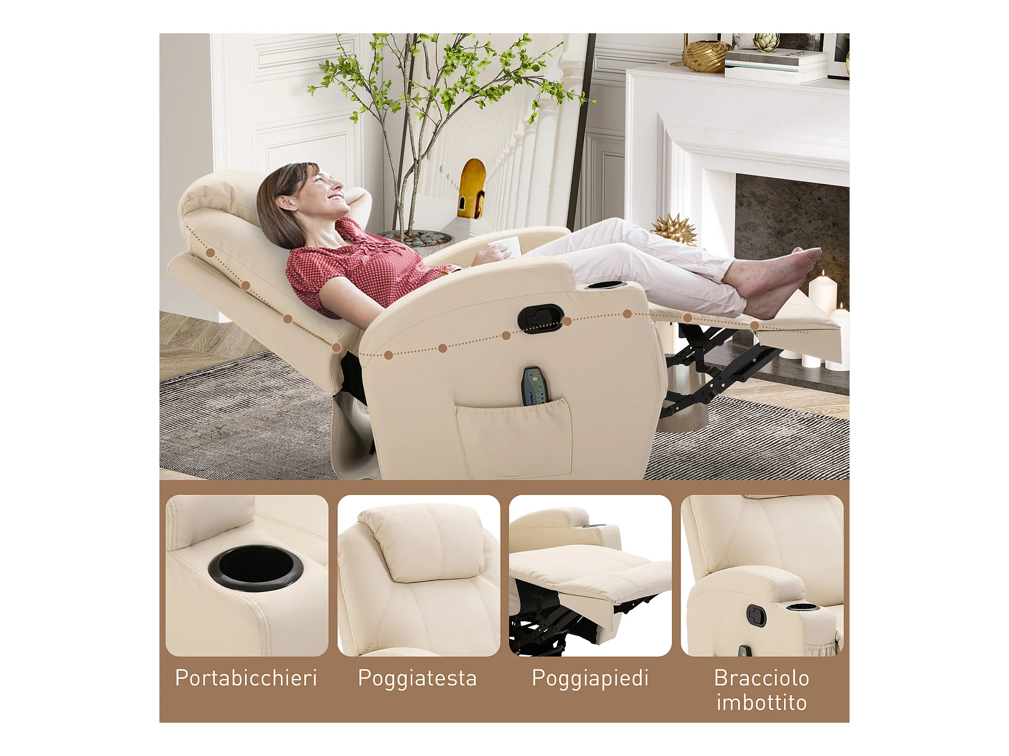 Poltrona reclinabile massaggiante elettrica in similpelle color crema
