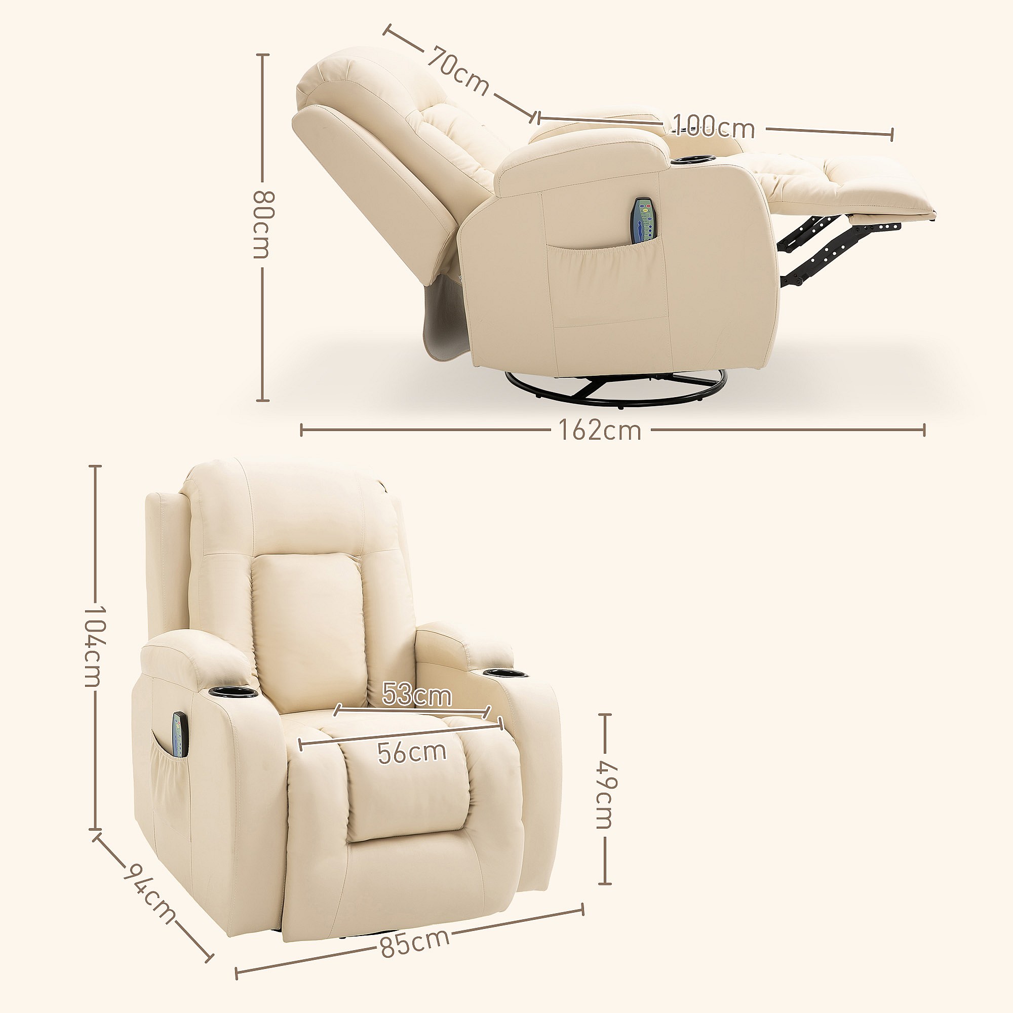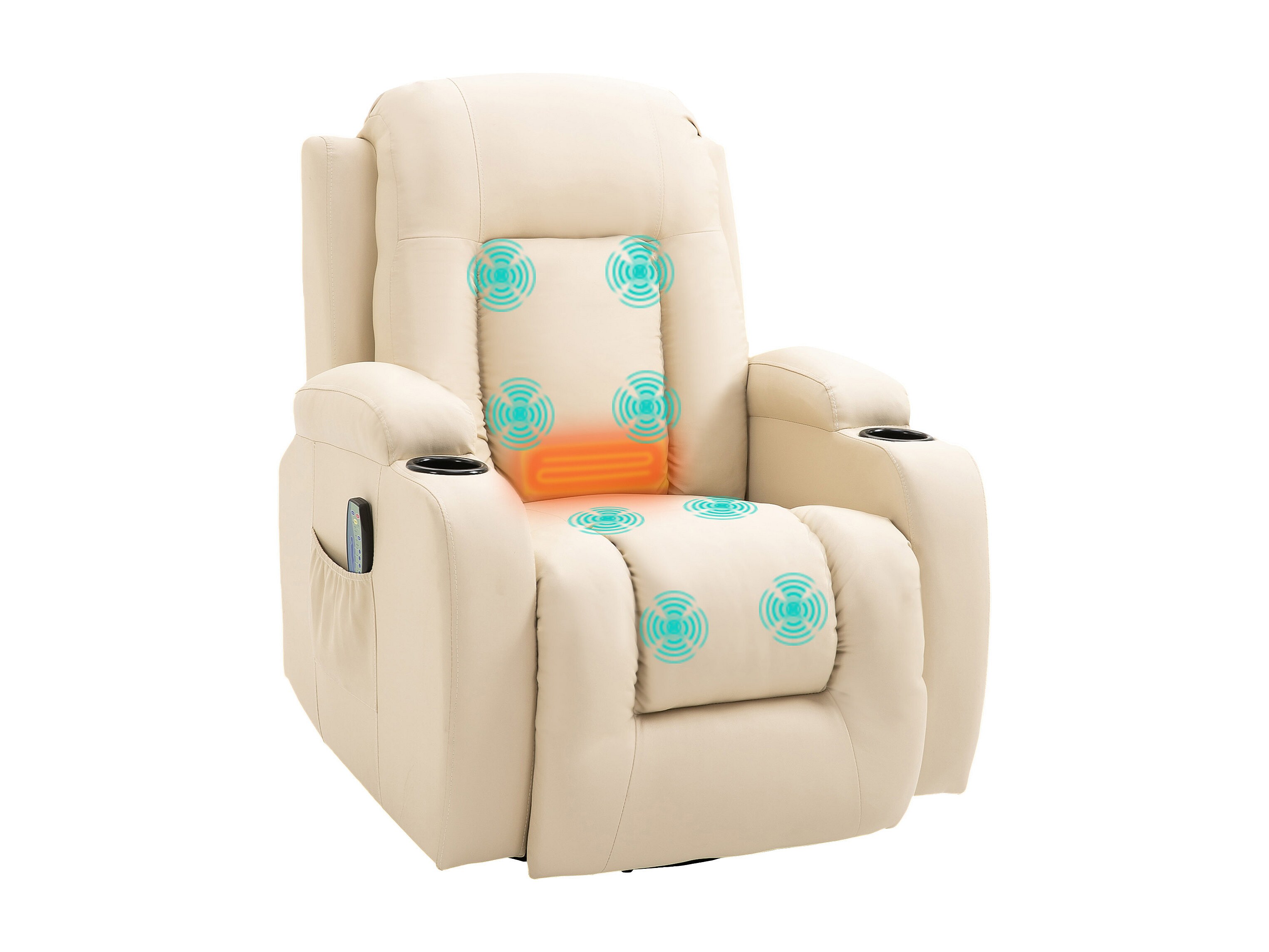 Poltrona massaggiante a 8 punti con telecomando in finta pelle beige