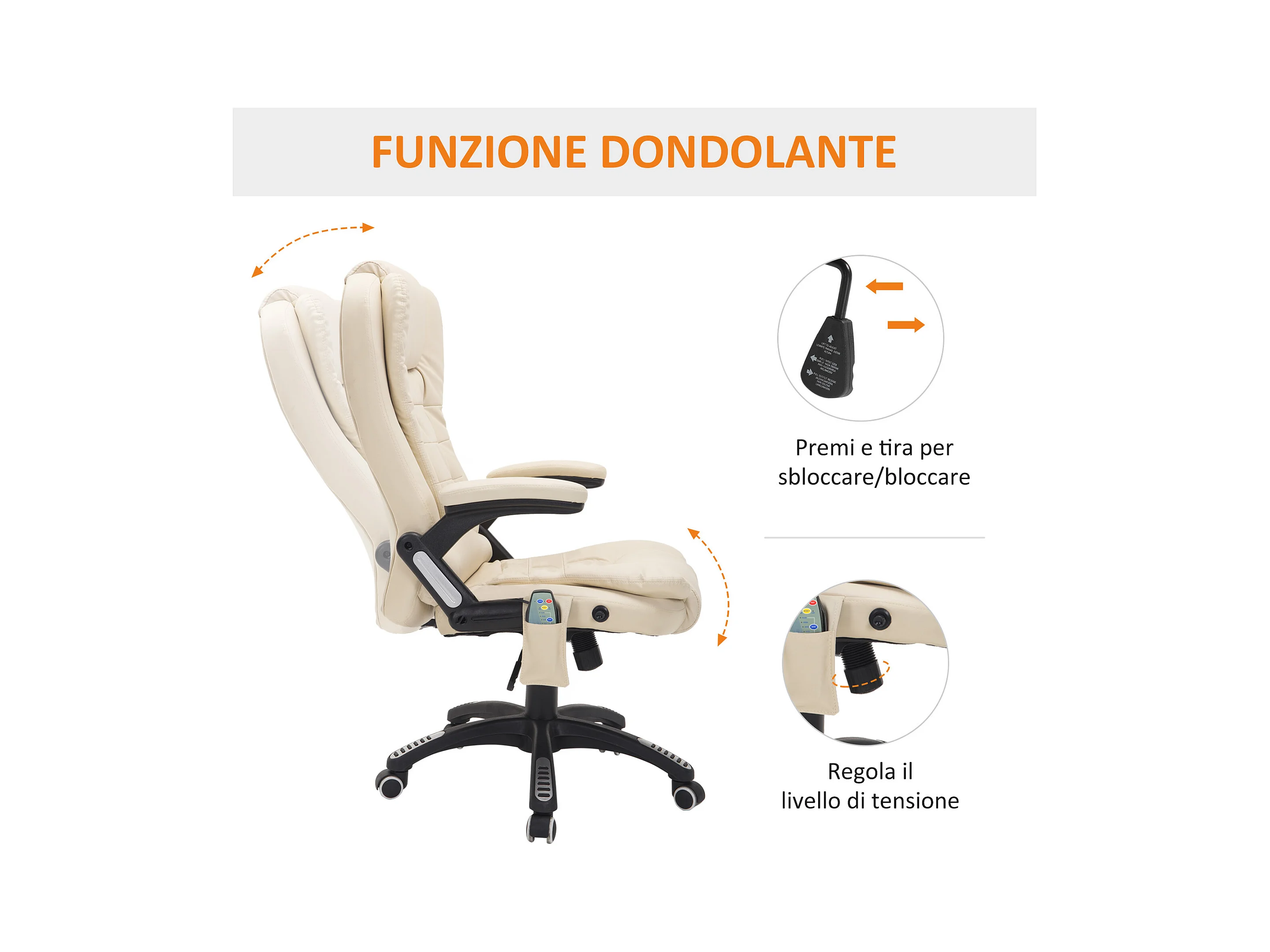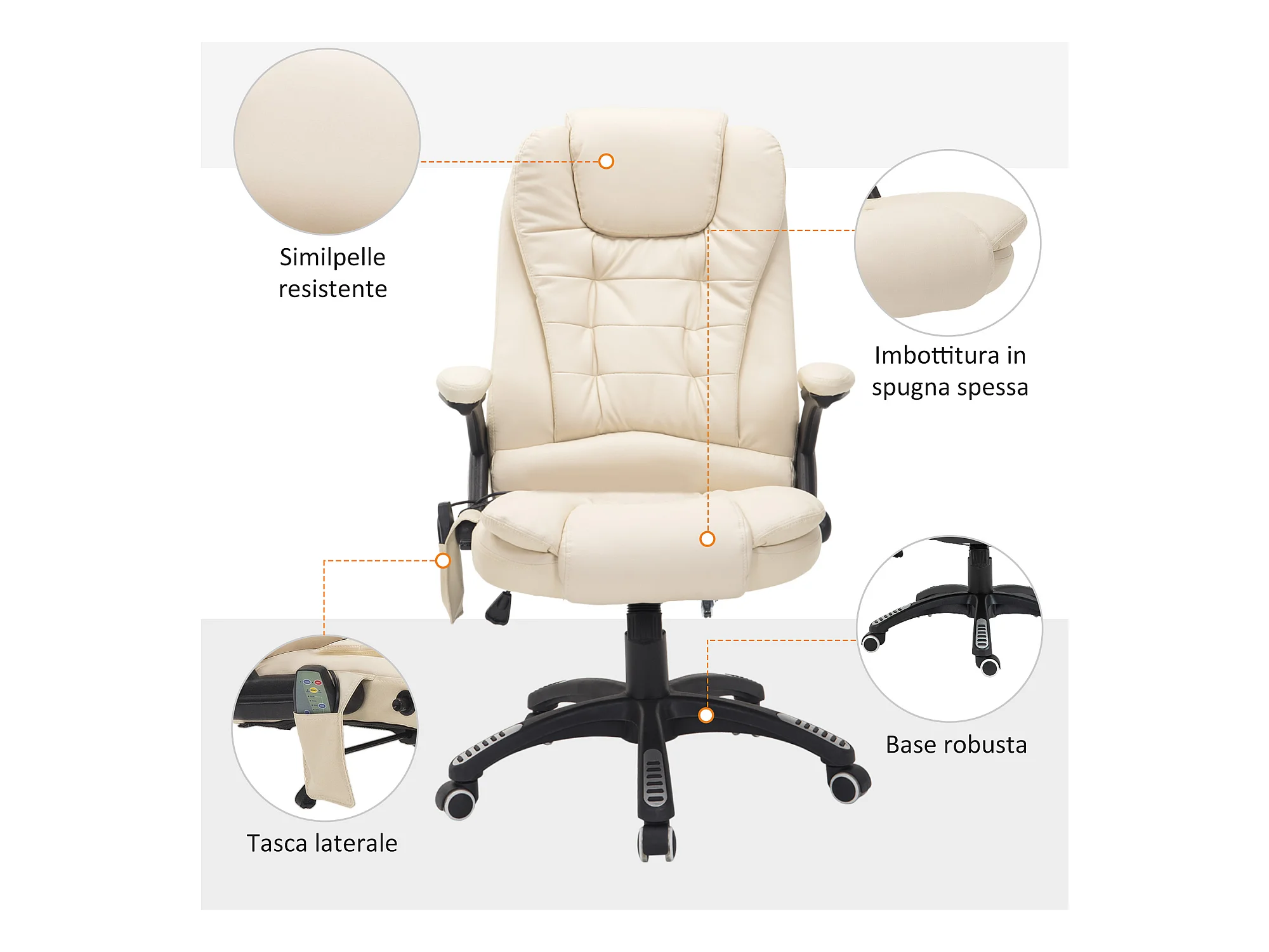 Fauteuil de Bureau massant en simili pelle crema dossier inclinabile 135° alta regolabile 120 kg