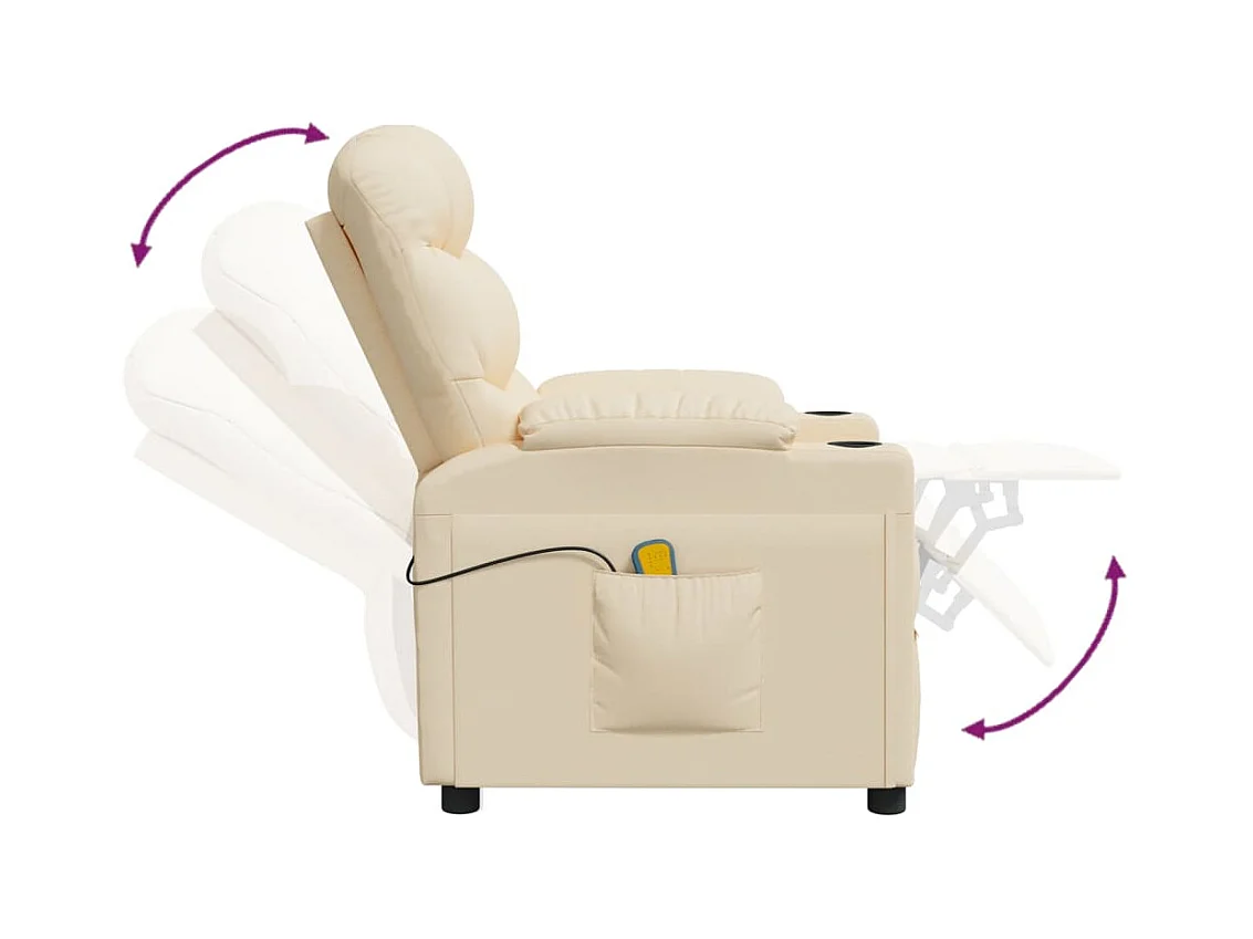 Poltrona Reclinabile Massaggiante Elettrica Crema in Tessuto