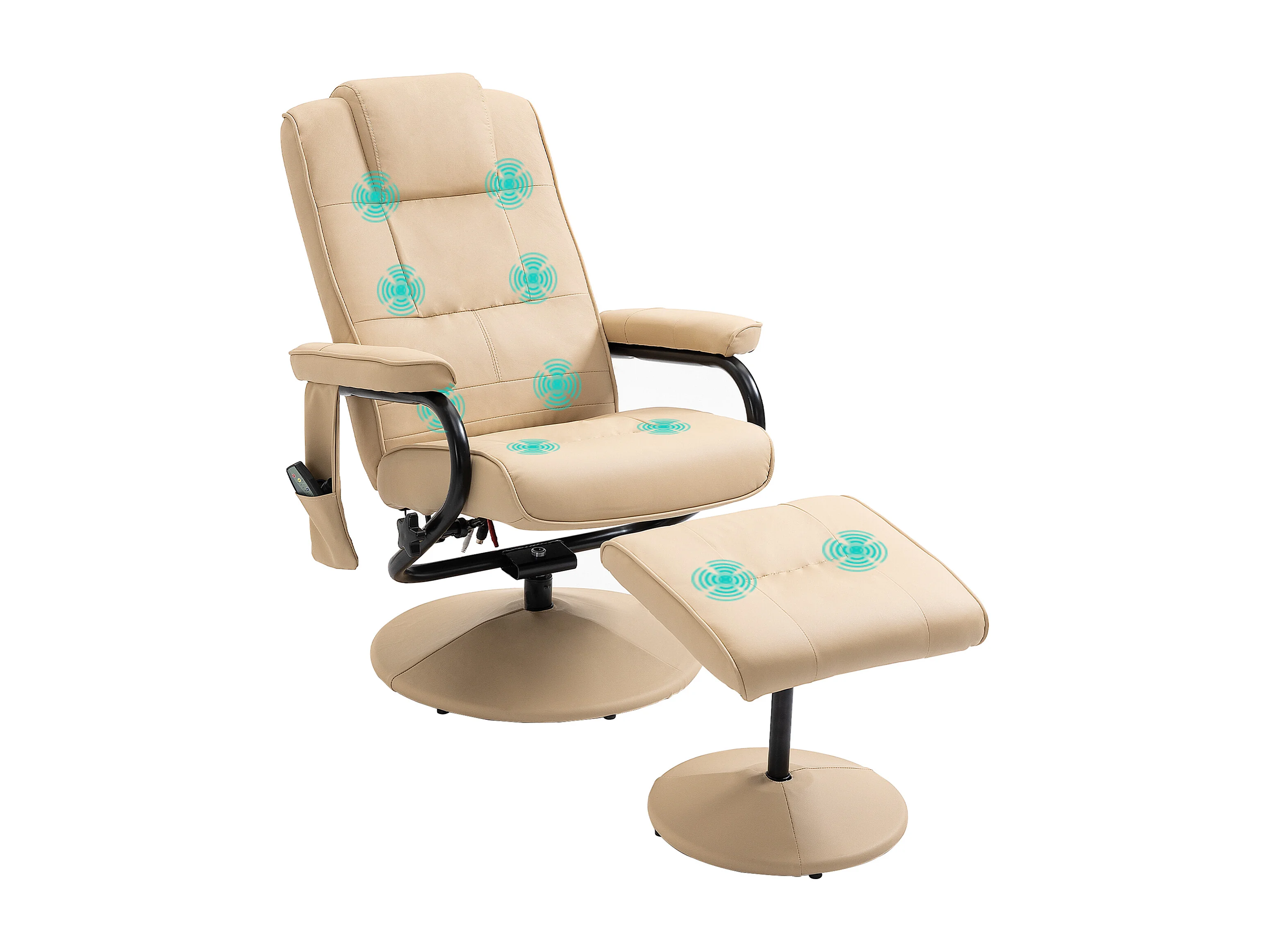 Poltrona massaggiante reclinabile a 145° con pouf e telecomando crema