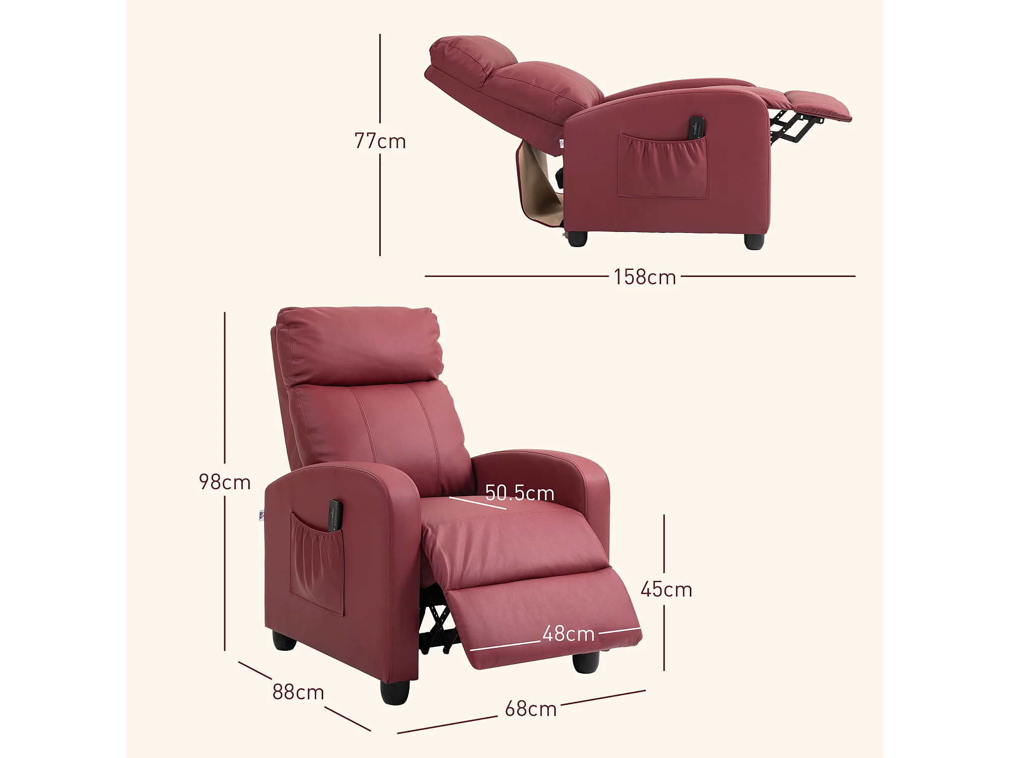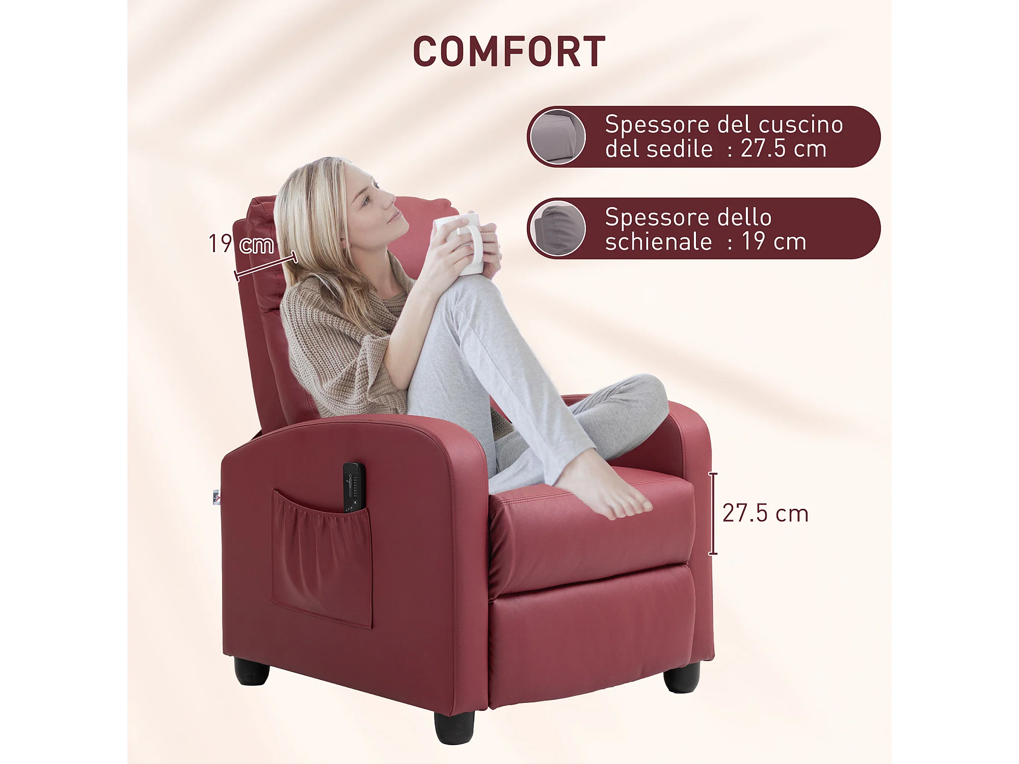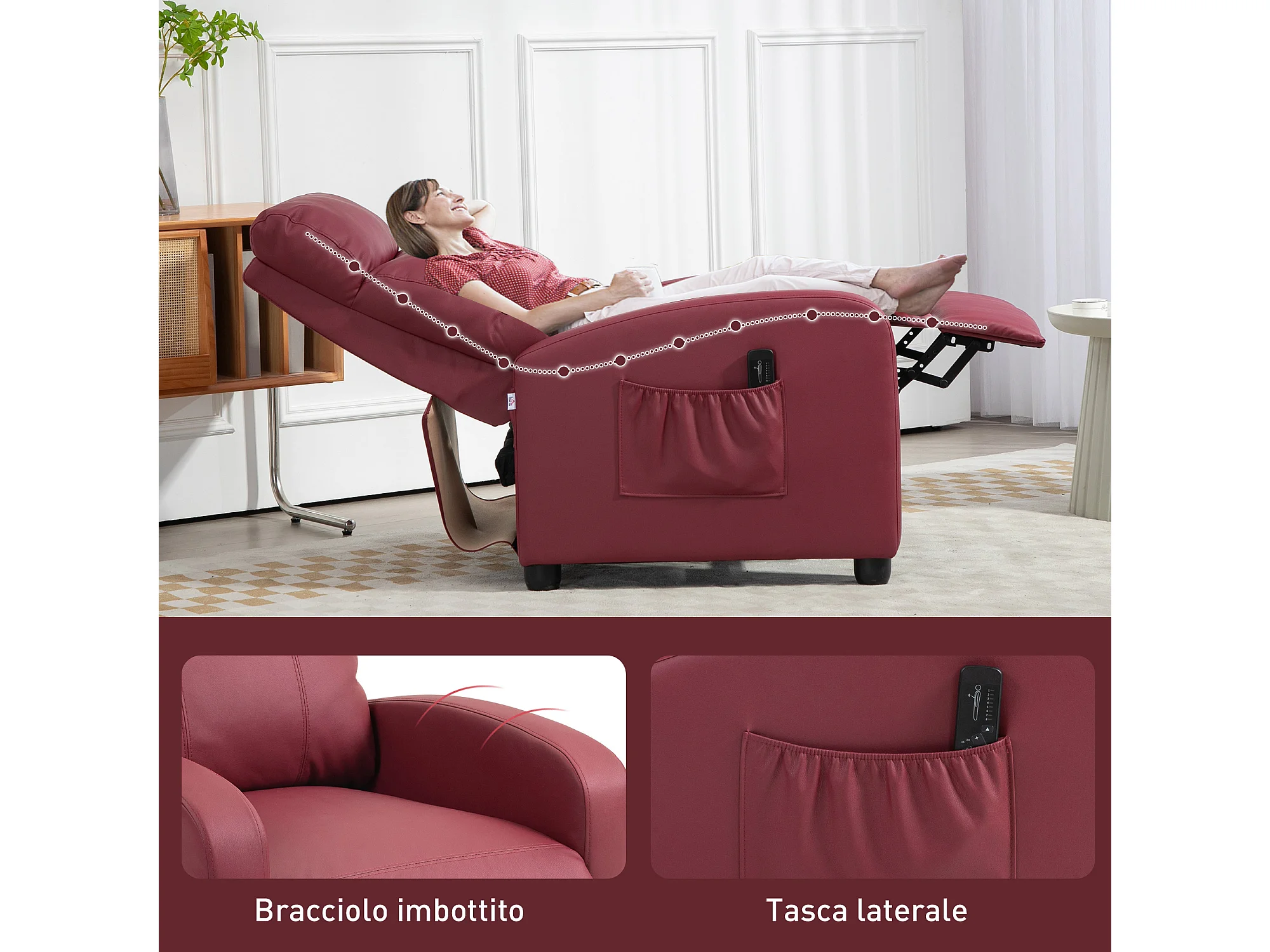 Poltrona massaggiante reclinabile con 8 modalità e telecomando rosso