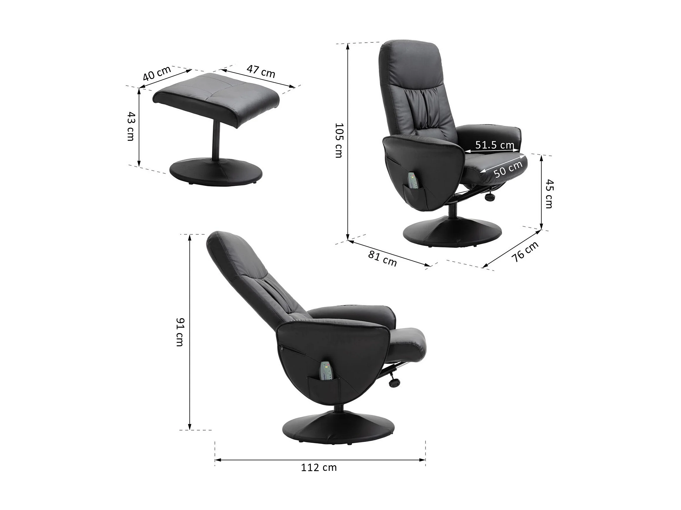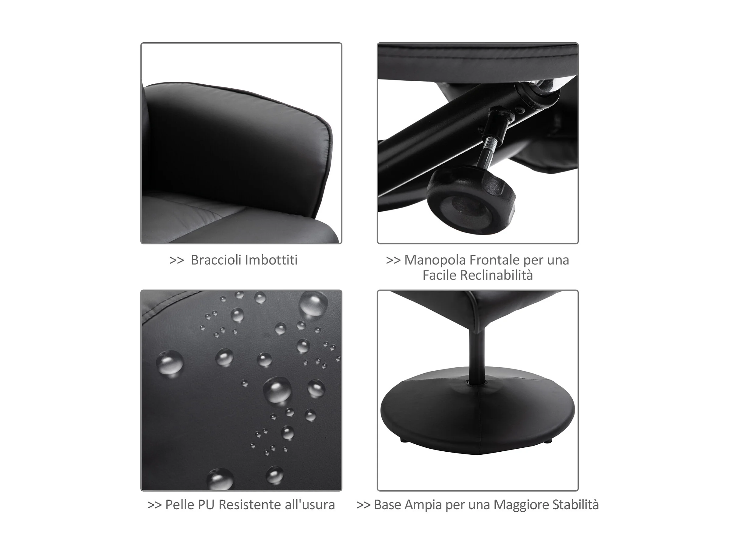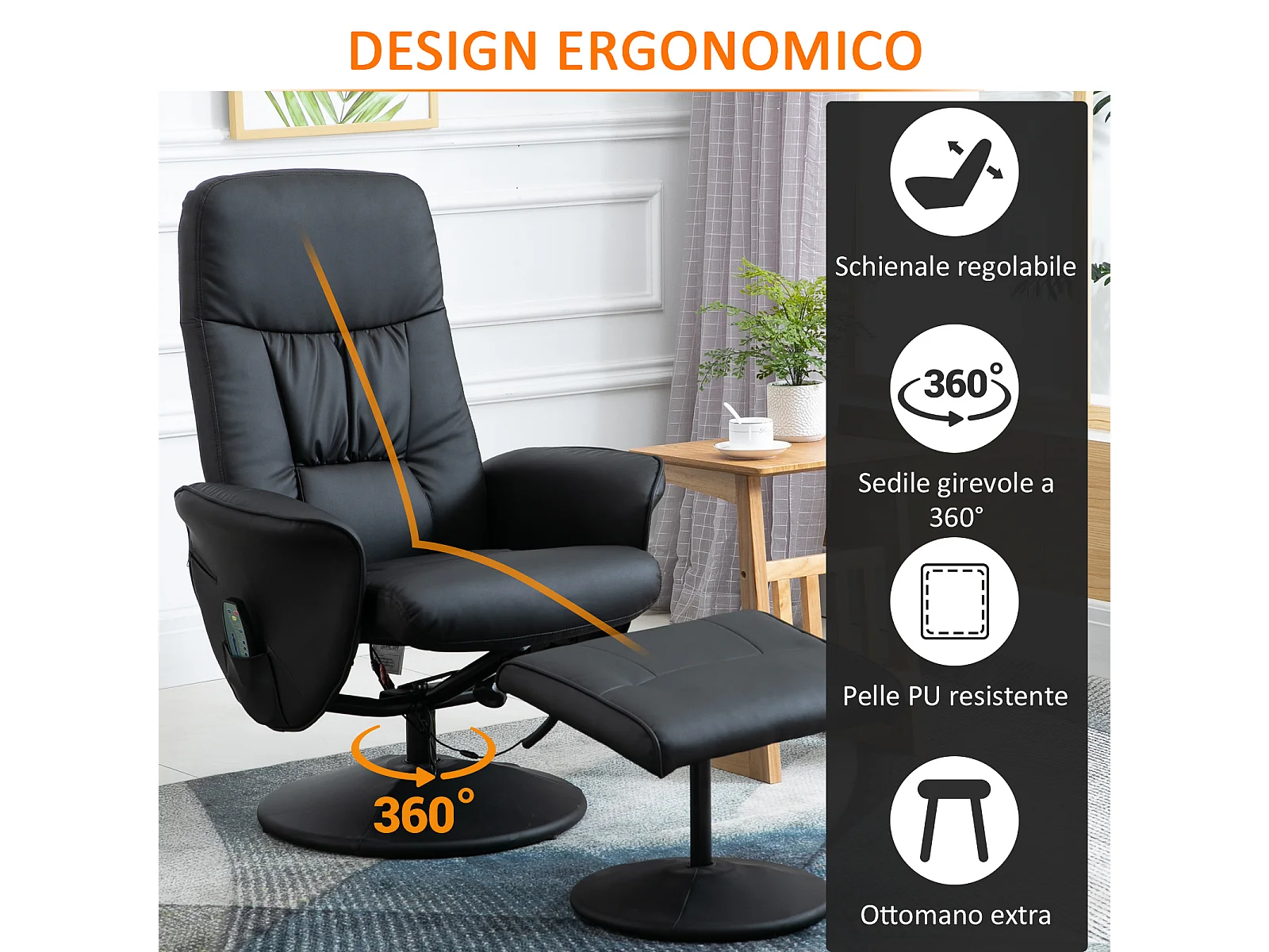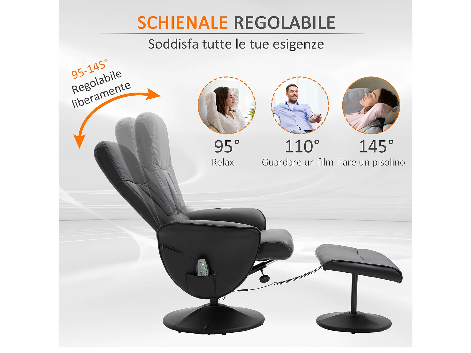 Poltrona massaggiante reclinabile con pouf poggiapiedi nero