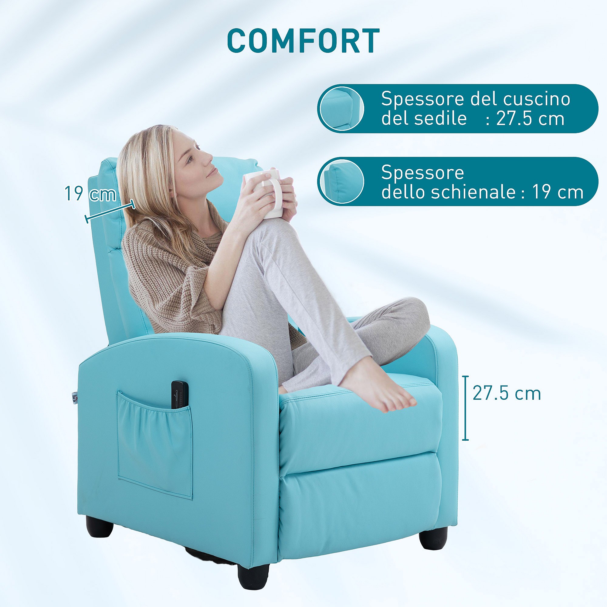 Poltrona massaggiante reclinabile con telecomando azzurro