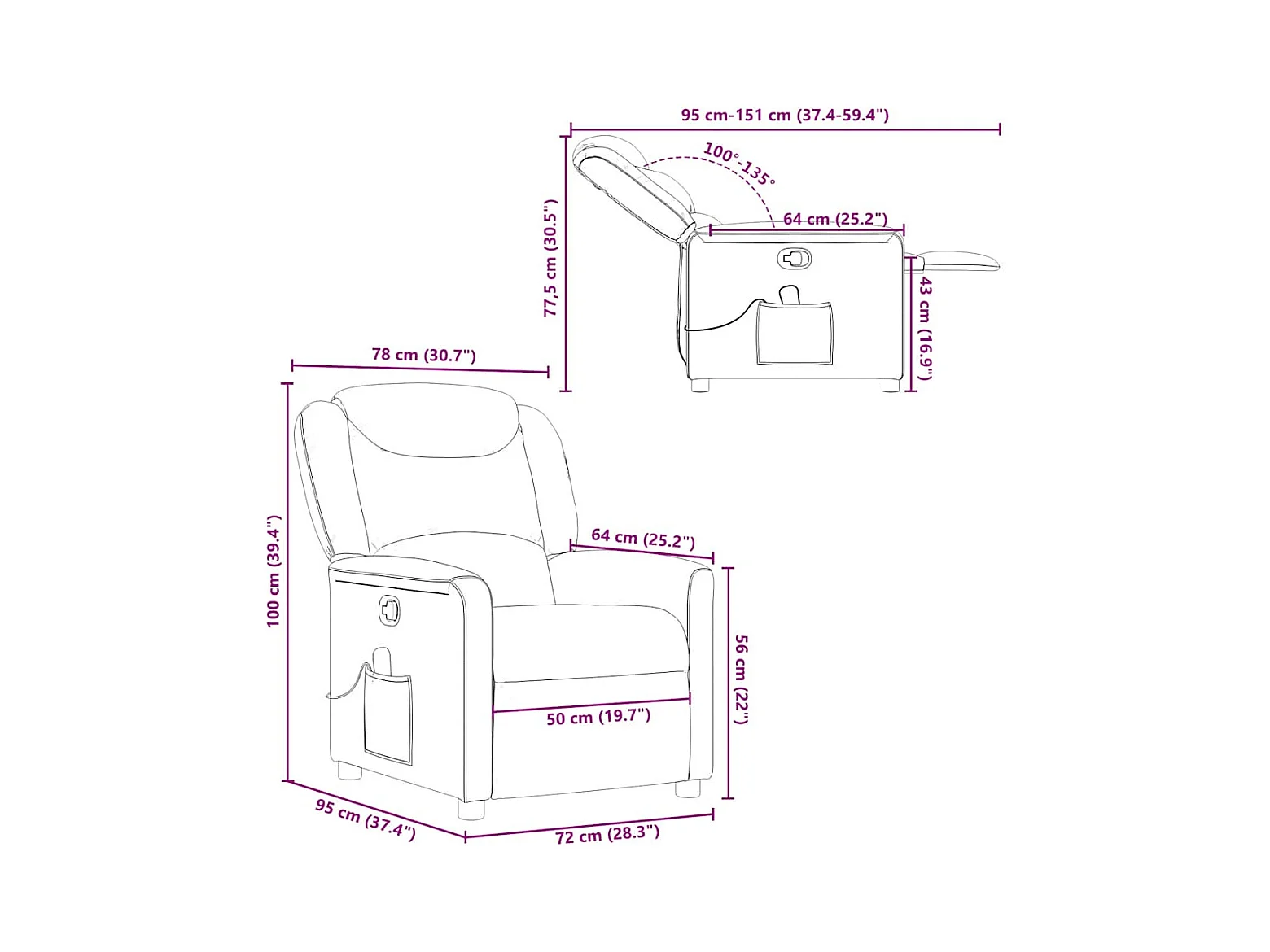 Poltrona relax manuale in tessuto marrone