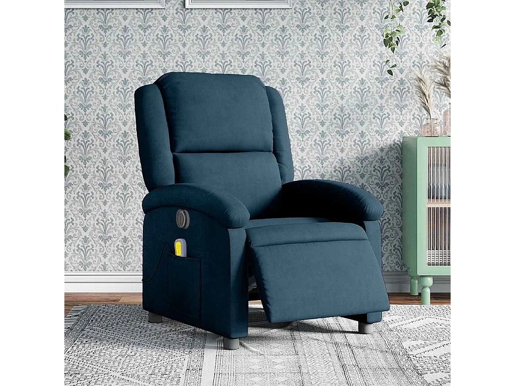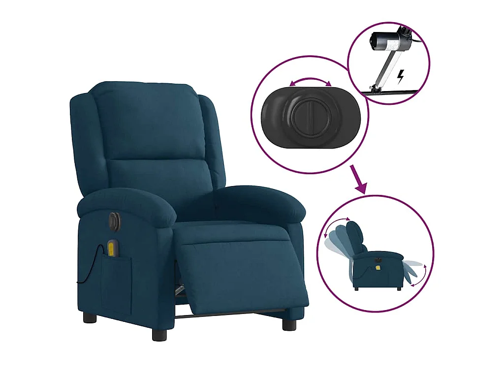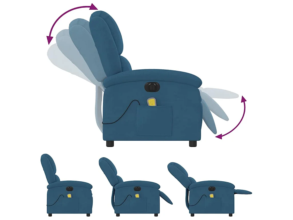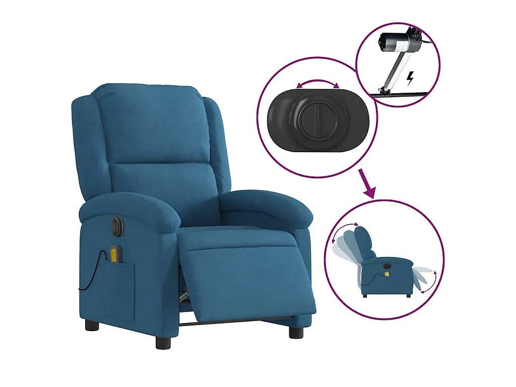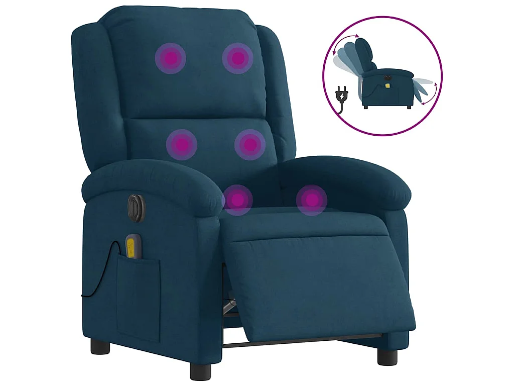 Poltrona Massaggiante Reclinabile Elettrica Blu in Velluto