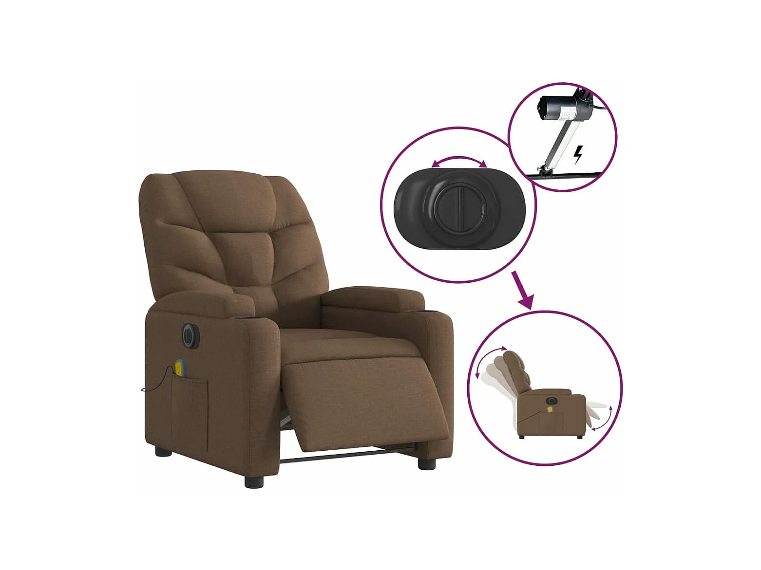 Poltrona Massaggiante Reclinabile Elettrica Marrone in Tessuto