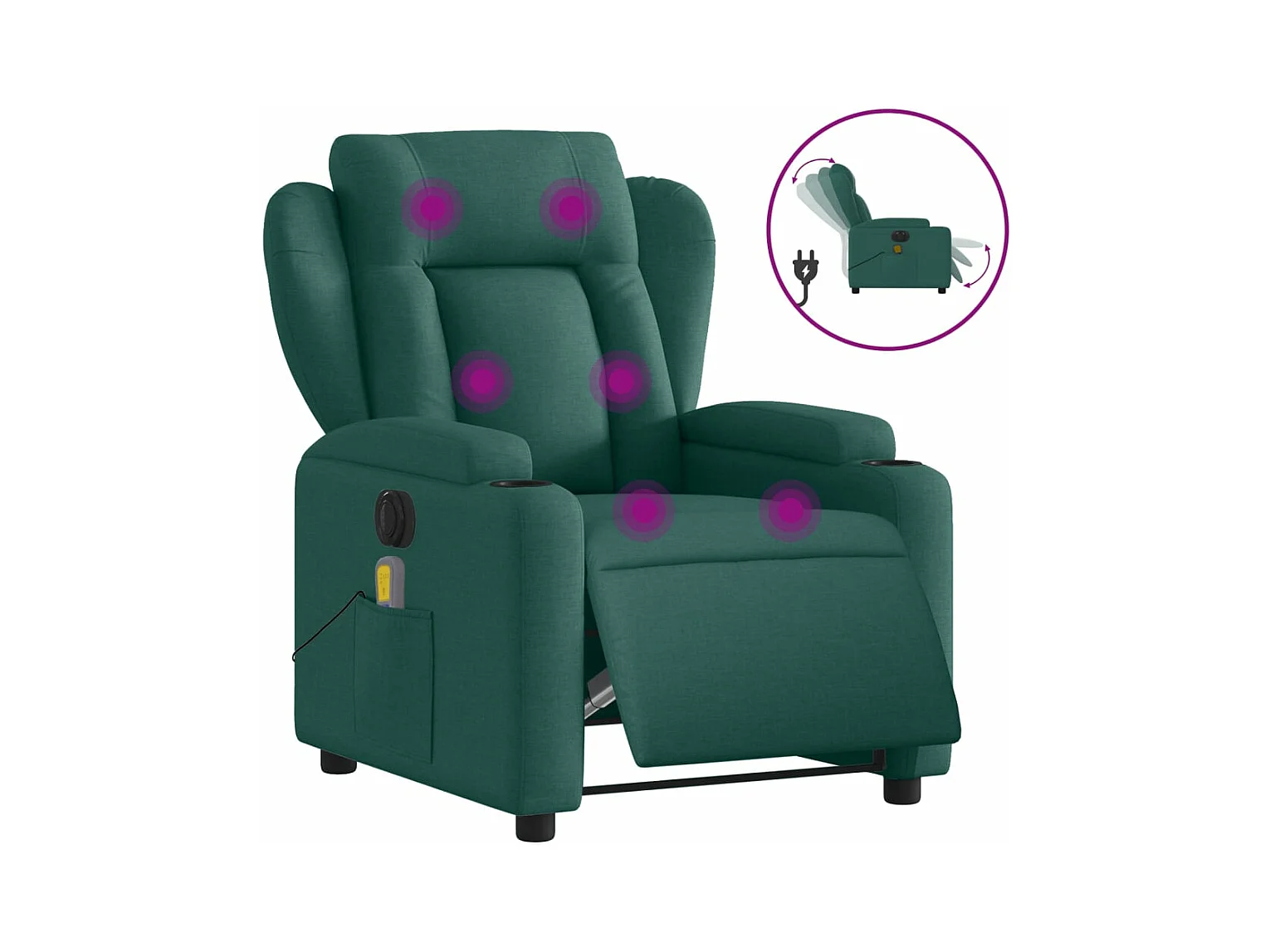 Poltrona Massaggiante Reclinabile Elettrica Verde Scuro Tessuto