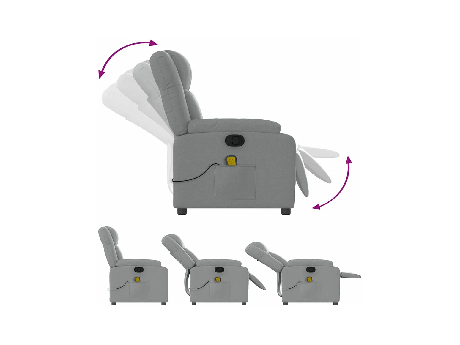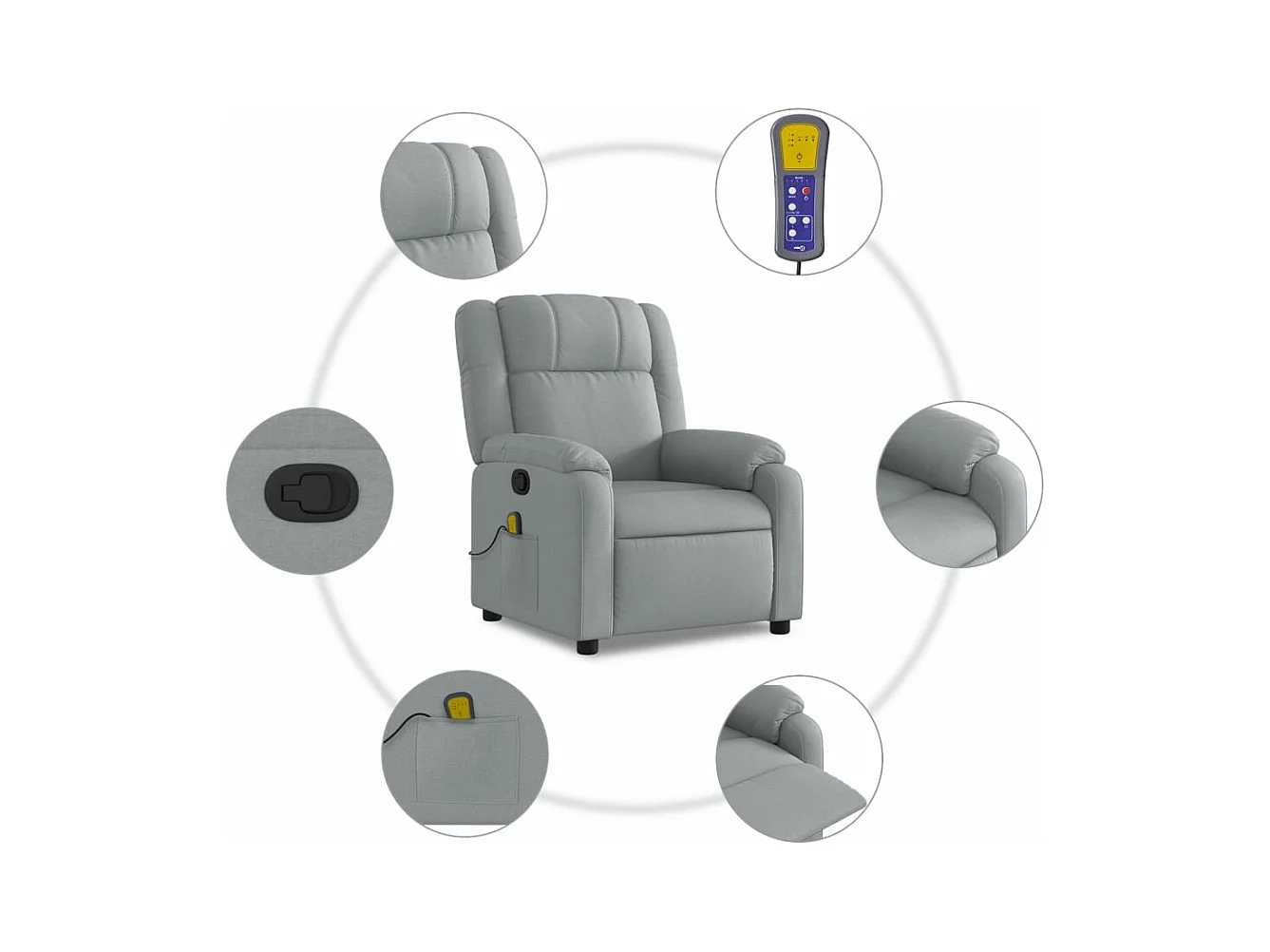 Poltrona Massaggiante Reclinabile Grigio Chiaro in Tessuto