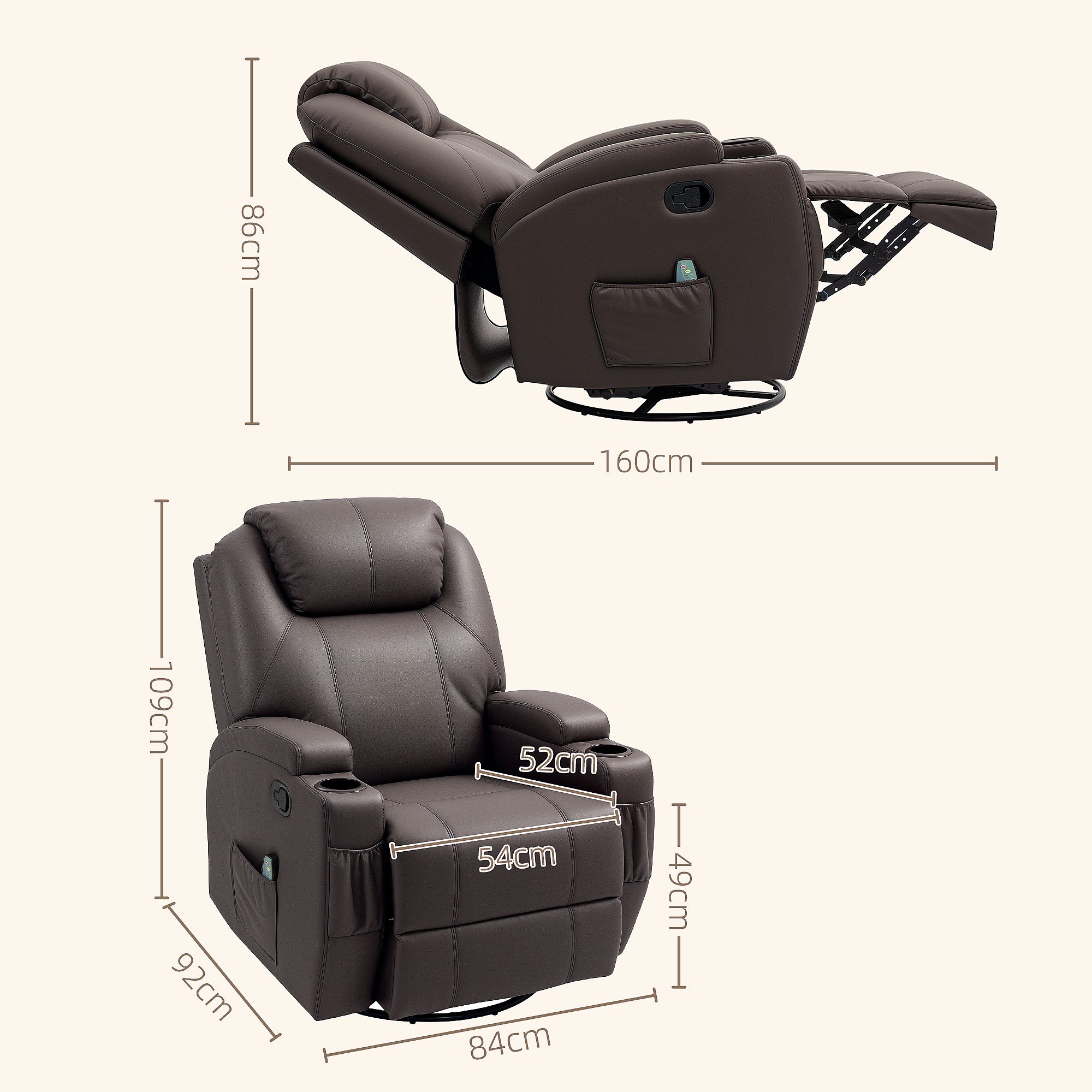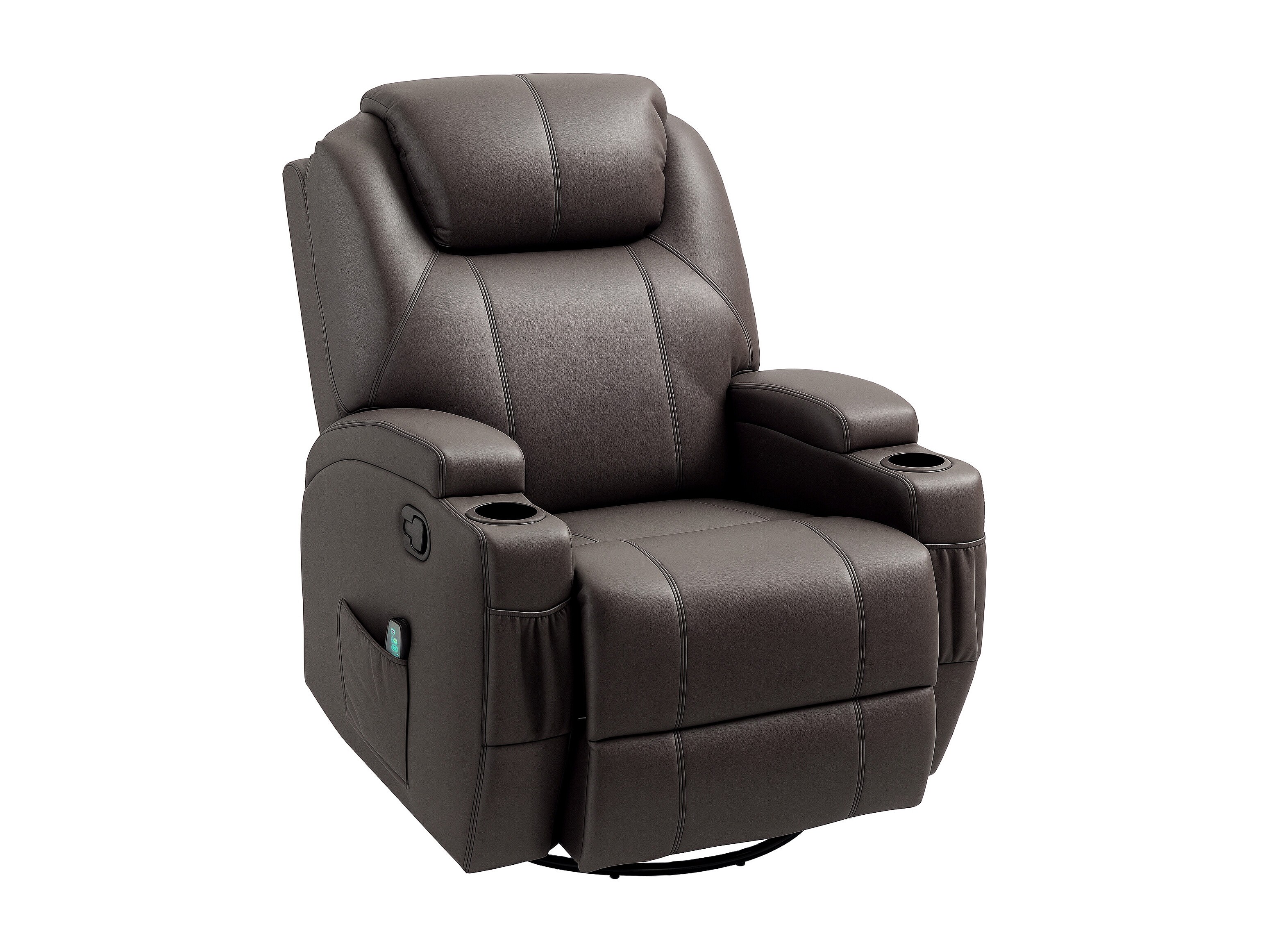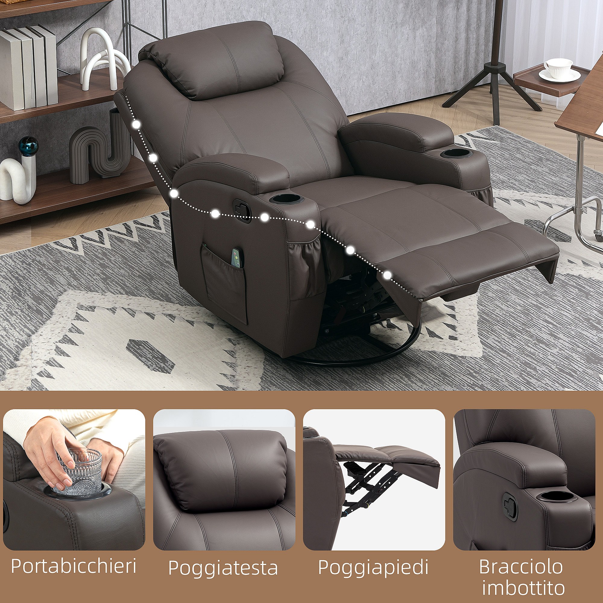 Poltrona massaggiante reclinabile in finta pelle marrone scuro