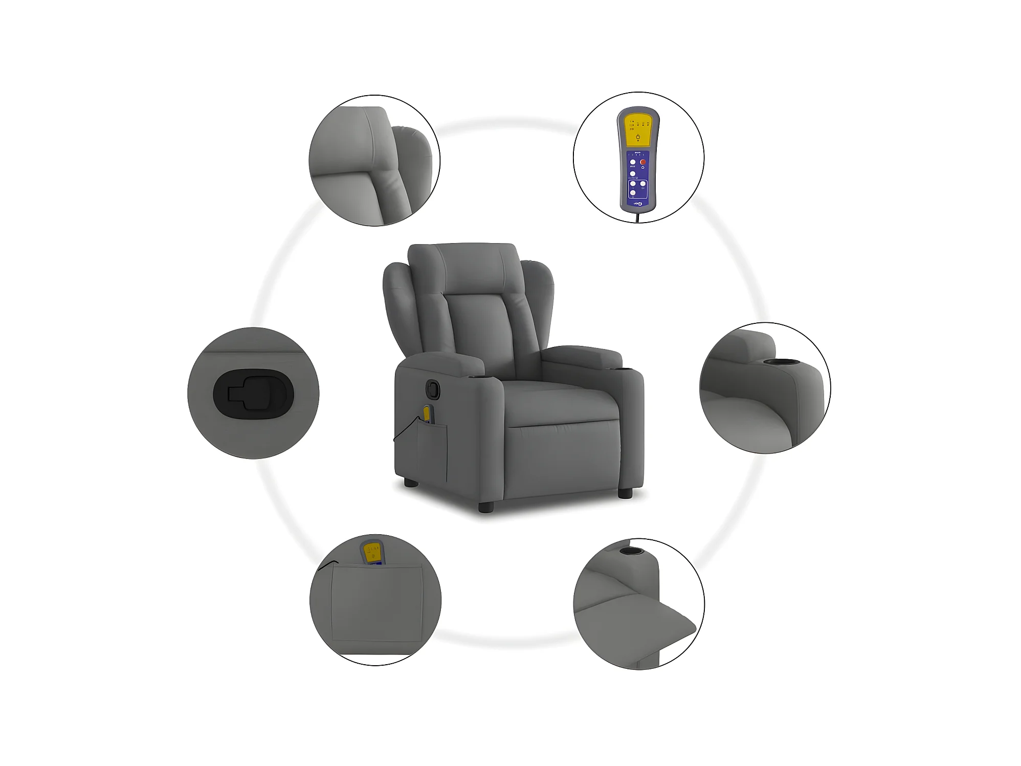 Poltrona massaggiante reclinabile in ecopelle grigia