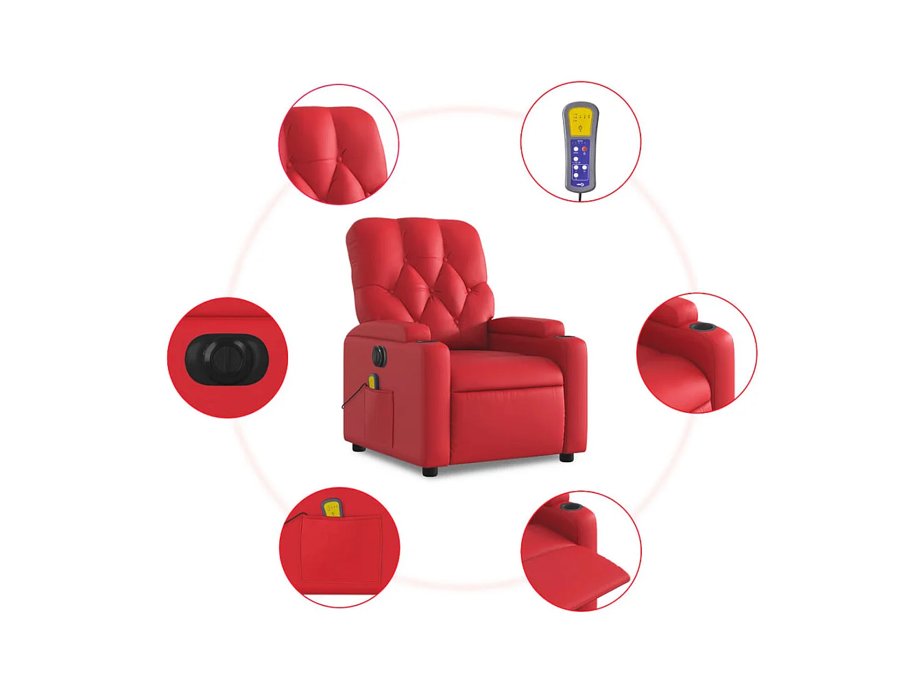 Poltrona Alzapersona Reclinabile Massaggio Rosso in Similpelle