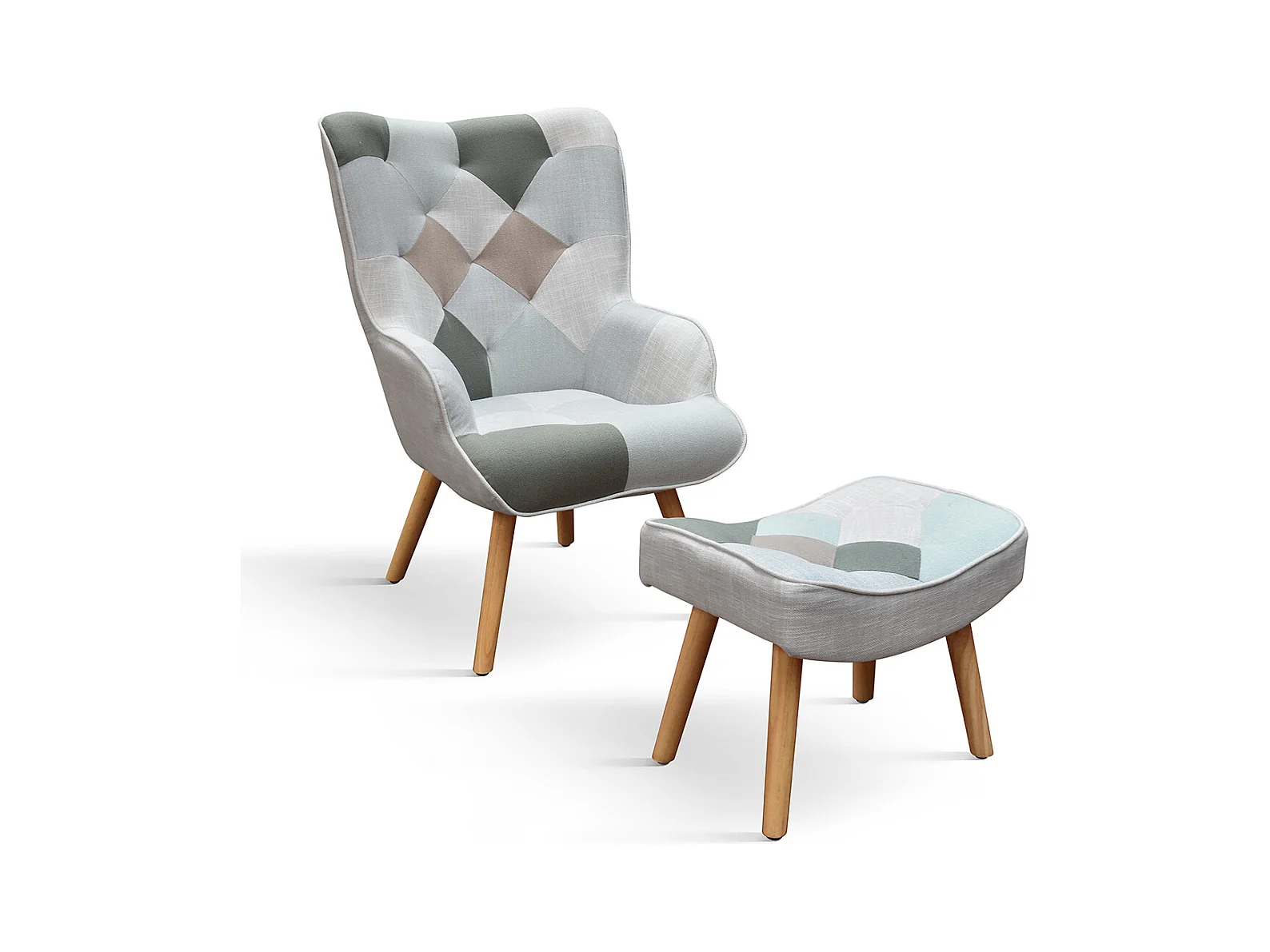 Poltrona Mila set da uno, Multicolor, Poltrona tessuto con poggiapiedi