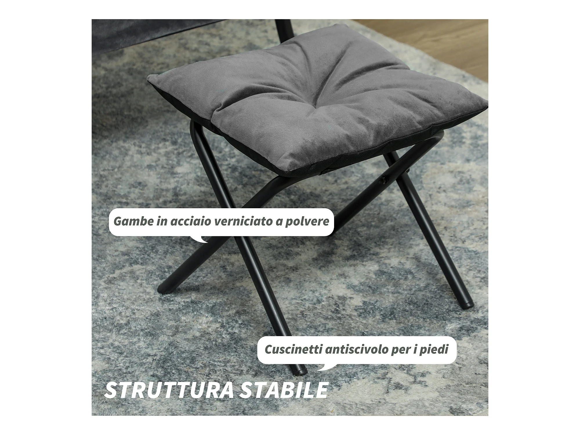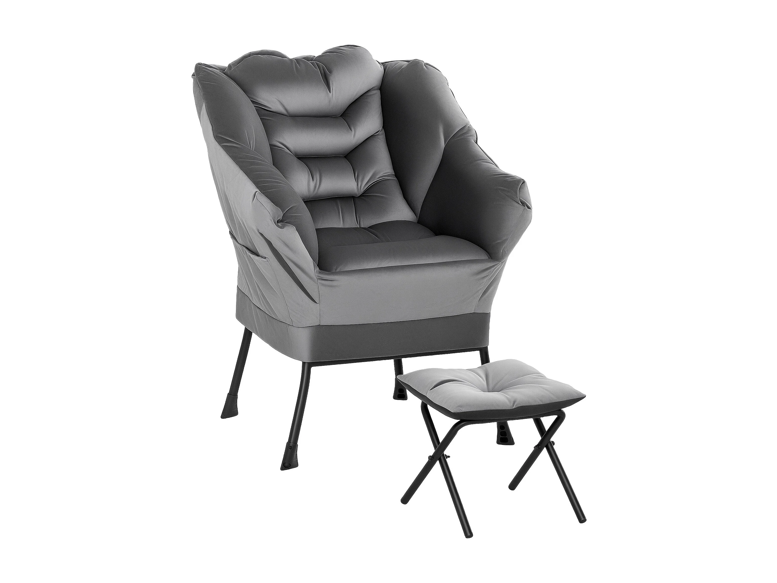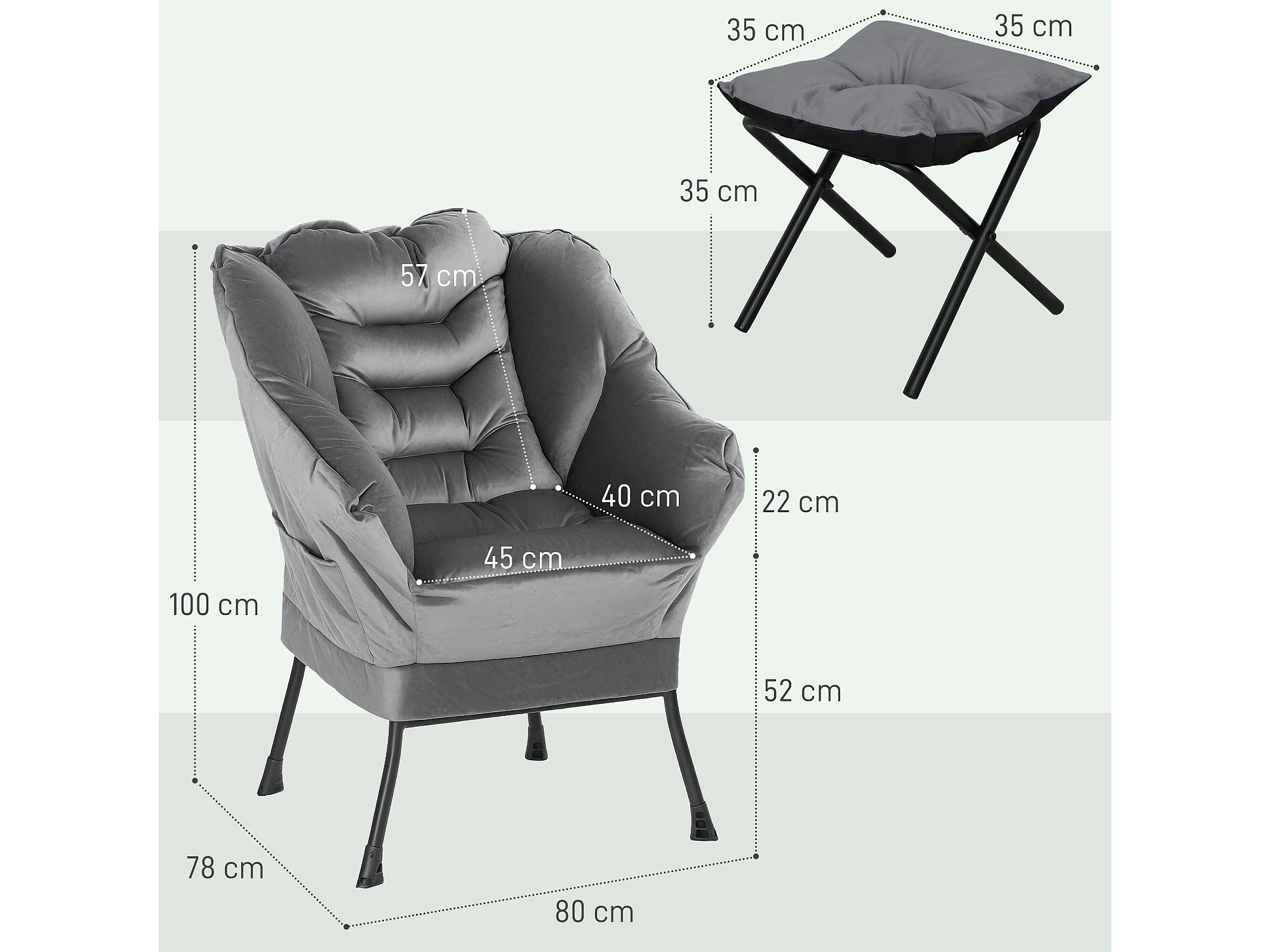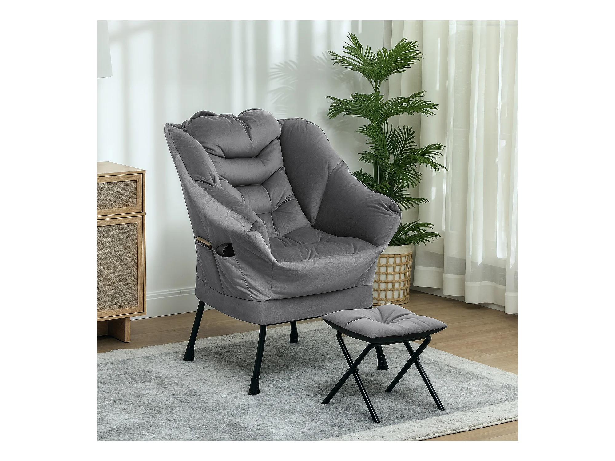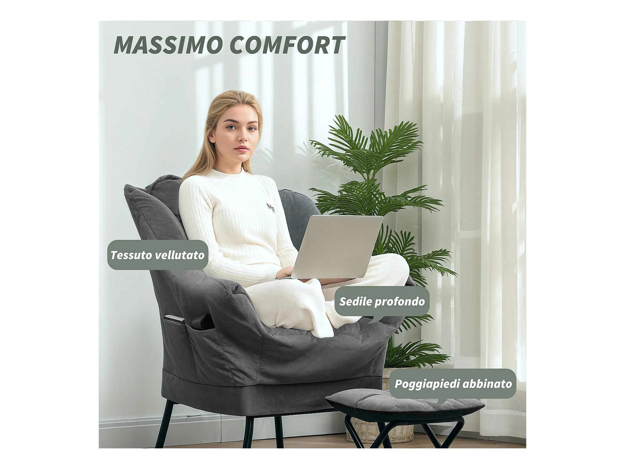 Poltrona moderna con poggiapiedi e tasche Laterali vellutata grigio